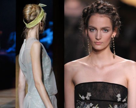來自Marc Jacobs秀場上的蓬松法式盤發(fā)和來自 華倫天奴 秀場上的精致飄逸花辮,像不像落入凡間的仙子啊。