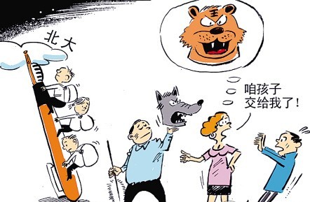 繼“美國虎媽”之后,“中國狼爸”成為全球教育界最炙手可熱的偶像級人物。在豆瓣網(wǎng)上,有一個43000多名成員的小組,這個小組擁有一個驚悚的名字:“父母皆禍害”,其成員自稱“小白菜”。我不敢說“狼爸”的教育方式“禍害”了他的4個子女;最有資格對“狼爸”的教子方法作出評判的是他的孩子。“虎狼”父母走紅讓我想到不久前看到的一則電視新聞,及花季少年死于魔鬼訓練……誰也不能說戒網(wǎng)中心的那些父母們不愛孩子,但發(fā)生在孩子身上的悲劇確實與他們的教育方式不當有關(guān)。 “虎狼式”教育是一種“家暴” 文 / 柯云路