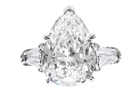 這款戒指賦予女性的是與眾不同的氣質,它的淚滴形狀可以令新娘的手指看起來非常修長動人。Actresses Katherine Heighl與Lela Rochon 的婚戒選擇的就是這個款式。三克拉的梨形鉆石,鉑金指環(huán)。