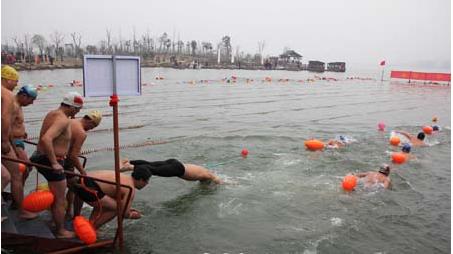 來自各地的冬泳愛好者躍下湘湖暢游。 2月5日下午,在蕭山湘湖湖山廣場,“湘湖杯”第六屆元宵冬泳表演賽開賽,來自浙江省內(nèi)外的27支冬泳隊伍總共近千人暢游湘湖,拉開了迎接龍年元宵節(jié)的序幕。 義烏冬泳隊也受主辦方邀請出征湘湖,冬泳愛好者報名熱情高漲,報名截止后人數(shù)又從33人增加到47人,隊員們紛紛踴躍報名要求參賽。 賽事最小參賽者屬義烏隊 值得一提的是,本次參加冬泳表演賽的年齡跨度很大,年齡最大的已經(jīng)78歲了,年齡最小的是義烏冬泳隊的一員,才13歲。 據(jù)其父汪先生說,兒子從9歲開始便隨他在水庫里游泳,那一年便可以來回游一趟義烏的南山水庫了。由于他自己特別喜歡游泳,到冬天也堅持了下來,一冬泳就是4年,這一次是他自己一定要跟著來游湘湖。 據(jù)了解,當(dāng)日下午湘湖的水溫僅為6.5度,比戶外溫度還要低,幾乎是歷屆的最低水溫。雖然天氣寒冷,不過冬泳達人們熱情卻是十分高漲,帶著泳帽、穿著泳衣,摩拳擦掌躍躍欲試。一旁卻是裹著棉襖和羽絨服前來觀看的市民,形成了鮮明的對比。 義烏冬泳隊的領(lǐng)隊金大孫說:“在堅持冬泳前自己由于生活習(xí)慣影響,長期頸椎疼痛,并伴有右側(cè)腦血管輕微堵塞,一年365天中有兩三百天會中暑。為了改善身體狀況,這才開始堅持冬泳,到現(xiàn)在堅持5年之后,身體已經(jīng)越來越好,去年一年下來中暑只有10次左右,頸椎病也好了許多! 冬泳難道就不冷嗎?“游泳健身,冬泳健志,貴在堅持!苯鸫髮O說出了句口號作為回答,“水溫在8度以下都可謂刺骨的冷,下水一瞬間全身刺痛,不過咬咬牙堅持下來后,就會覺得非常痛快! 冬泳并不是人人都適合 冬泳是一項健康的有氧運動,能增強心血管的功能。因此,冬泳有利于防治心血管疾病,在堅持常年進行冬泳鍛煉的人中,患動脈硬化、高血壓之類的人極其罕見。 但冬泳并非人人皆宜。據(jù)現(xiàn)場醫(yī)護人員介紹,若有嚴(yán)重疾病,如高血壓、冠心病、腦血管病、腎病、肝病、精神障礙及糖尿病、過敏性體質(zhì)、先天性心臟病、癲癇病,以及有外傷或有炎癥的人和酗酒者都不宜參加冬泳,否則有可能導(dǎo)致疾病突發(fā)或傷害身體。兒童由于正處于身體發(fā)育期,參加冬泳更要注意適量,必須有成年人監(jiān)護。 對于想嘗試冬泳的人,金大孫給出了建議,即便是體質(zhì)好的人要進行冬泳,也應(yīng)有一個循序漸進的過程,最好從夏天開始游到冬天,使身體逐步適應(yīng)水溫的變化。另外在冬泳下水前,一定要先做好充分的熱身。 |