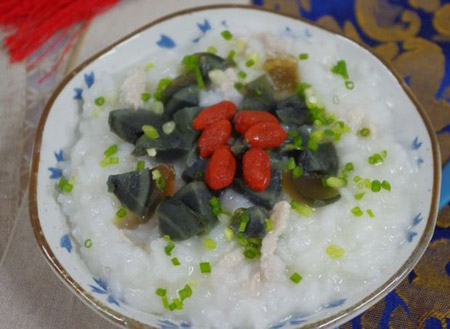 香米、皮蛋、瘦肉、輔料:香蔥、姜末佐料:鹽、味素、料酒、淀粉