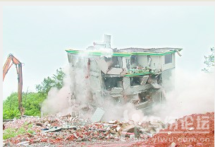“此次拆遷房屋位于義烏市疏港高速公路蘇溪互通A匝道橋,占地總面積400余平方米,建筑面積1800平方米。由于該房子遲遲未能拆除,嚴重阻礙了互通橋梁的施工!痹摴こ添椖哭k負責人介紹,經過蘇溪鎮(zhèn)政府、石塘村兩委加班加點深入農戶做思想工作,終于與房主達成協(xié)議,同意拆除。