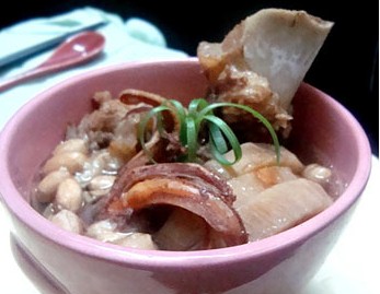 筒骨、蓮藕、花生、干魷魚、姜、鹽、醋。