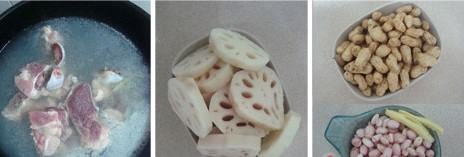 2、3、蓮藕去皮洗凈切成厚塊,花生去殼,姜切片待用;