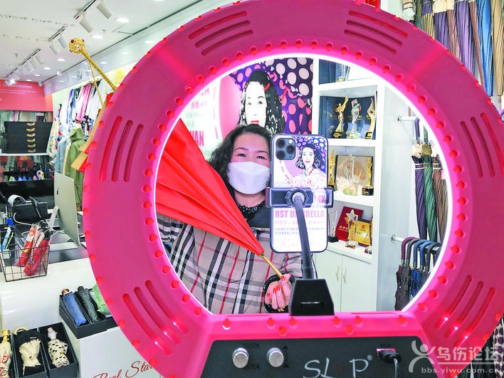 “小伙伴,新年好,今天我們市場(chǎng)開市了,我也迫不及待地想把我們最新設(shè)計(jì)的幾款雨傘推薦給大家!弊蛉,和往年市場(chǎng)開市有所不同,國際商貿(mào)城二區(qū)“星寶傘業(yè)”負(fù)責(zé)人張吉英在整理完店鋪后,迫不及待地開啟了新年第一場(chǎng)直播。 “受疫情影響,很多外地客商可能出行還不是很方便。有了直播平臺(tái),我和大家的交流就不受空間距離限制了。”張吉英笑著說。除了直播銷售外,她在開市當(dāng)天還接到了來自英國、印度、意大利、西班牙、法國等多個(gè)國家和地區(qū)的訂單 |