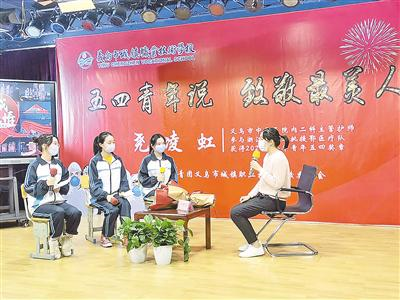 為弘揚(yáng)五四精神,宣傳模范力量,4月29日,義烏市城鎮(zhèn)職校團(tuán)委在校演播廳舉辦了“五四青年說(shuō),致敬最美人”活動(dòng)。校方邀請(qǐng)了優(yōu)秀青年代表義烏中醫(yī)院援鄂護(hù)士堯凌虹,來(lái)向團(tuán)員青年們分享自身的援鄂故事。此次活動(dòng)還采用了校園電視直播和抖音直播的形式加大宣傳力度,讓更多的人都能感受到榜樣的力量。