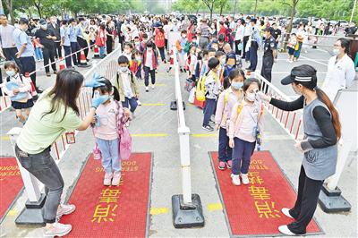 當(dāng)天,義烏市有300余所幼兒園正式開園,5.9萬余名“小神獸”順利入園。各幼兒園全力做好校園消毒、錯峰入園、體溫檢測等各項(xiàng)防疫措施,把衛(wèi)生習(xí)慣培養(yǎng)融入日常教學(xué),全力保障在園學(xué)生安全。