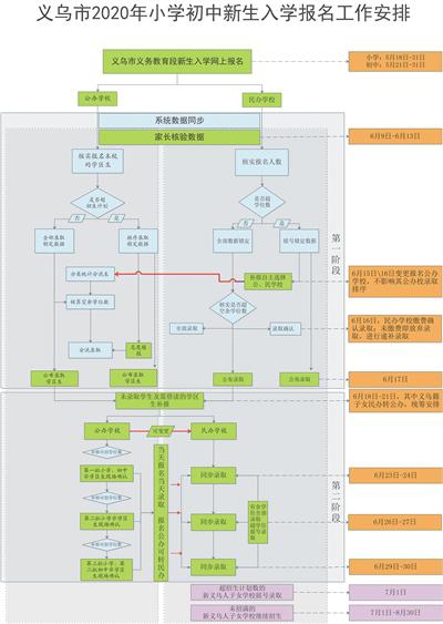 今年,我市小學(xué)、初中新生入學(xué)工作中出現(xiàn)了一個(gè)大變革,即實(shí)行“公民同招”。 什么是“公民同招”?簡(jiǎn)單來(lái)說(shuō),就是公辦、民辦學(xué)校同步招生。雖然這個(gè)詞在最近廣受熱議,但并不是新鮮事物,而是歷經(jīng)了許久的討論和醞釀!吨泄仓醒 國(guó)務(wù)院關(guān)于深化教育教學(xué)改革全面提高義務(wù)教育質(zhì)量的意見(jiàn)》中指出,推進(jìn)免試就近入學(xué)全覆蓋,民辦義務(wù)教育學(xué)校招生納入審批地統(tǒng)一管理,與公辦學(xué)校同步招生;對(duì)報(bào)名人數(shù)超過(guò)招生計(jì)劃的,實(shí)行電腦隨機(jī)錄取。教育部在2018年和2019年做好普通中小學(xué)入學(xué)通知等文件中也多次強(qiáng)調(diào)要推行“公民同招”。 公民同招 義烏這樣做 按照規(guī)定,今年我市小學(xué)入學(xué)對(duì)象為2013年9月1日—2014年8月31日間出生的兒童,初中入學(xué)對(duì)象為2020年小學(xué)畢業(yè)生。 公辦小學(xué)、初中招生統(tǒng)一分為網(wǎng)上登記和現(xiàn)場(chǎng)確認(rèn)(民辦為繳費(fèi)確認(rèn))兩個(gè)階段。 民辦學(xué)校招生和公辦學(xué)校同步。其中新絲路教育集團(tuán)、義烏公學(xué)等民辦學(xué)校報(bào)名人數(shù)超出招生計(jì)劃數(shù)時(shí),在6月15日搖號(hào)錄取。柳青教育集團(tuán)、啟東教育集團(tuán)等民辦學(xué)校如有校區(qū)報(bào)名人數(shù)超出招生計(jì)劃數(shù)時(shí),在7月1日(公辦學(xué)校非學(xué)區(qū)生招生結(jié)束后)搖號(hào)錄取。 義烏市2020年小學(xué)初中新生入學(xué)報(bào)名工作安排如下(也可參見(jiàn)右下圖): 6月15日 公辦學(xué)校學(xué)區(qū)生數(shù)據(jù)鎖定;民辦學(xué)校報(bào)名生源數(shù)據(jù)鎖定。 當(dāng)天12:00—17:00,民辦學(xué)校未搖中的義烏戶籍生可重新報(bào)名公辦學(xué)校,不影響公辦學(xué)校錄取排序,也可重新報(bào)其他民辦學(xué)校。 6月16日8:00—12:00 民辦學(xué)校繳費(fèi)確認(rèn)錄取。 6月17日17:00后 公辦學(xué)校審核所有學(xué)區(qū)生數(shù)據(jù),公布學(xué)區(qū)生錄取結(jié)果; 民辦學(xué)校公布第一階段錄取結(jié)果。 6月18日10:00—6月21日17:00 民辦學(xué)校未錄取的學(xué)生可重新報(bào)名公辦、民辦學(xué)校。 6月23日-24日8:00—17:00 第一批公辦小學(xué)、初中非學(xué)區(qū)生到,F(xiàn)場(chǎng)確認(rèn); 民辦學(xué)校第二階段招生,當(dāng)天確認(rèn),當(dāng)天公布錄取結(jié)果。 6月26日-27日8:00—17:00 第二批公辦小學(xué)現(xiàn)場(chǎng)確認(rèn); 民辦學(xué)校第二階段招生,當(dāng)天確認(rèn),當(dāng)天公布錄取結(jié)果。 6月29日-30日8:00—17:00 第三批公辦小學(xué)、初中非學(xué)區(qū)生現(xiàn)場(chǎng)確認(rèn); 民辦學(xué)校第二階段招生,當(dāng)天確認(rèn),當(dāng)天公布錄取結(jié)果。 7月1日-8月30日8:00—17:00 新義烏人子女學(xué)校繼續(xù)在核定辦學(xué)規(guī)模內(nèi)招生。 需要家長(zhǎng)注意的是,義烏市戶籍新生原則上均有安排的學(xué)校,但是如未進(jìn)行網(wǎng)上登記,學(xué)校將無(wú)法進(jìn)行錄取。我市公辦民辦小學(xué)、初中招生網(wǎng)上登記即將于5月31日截止,請(qǐng)家長(zhǎng)務(wù)必在規(guī)定時(shí)間內(nèi)為孩子進(jìn)行網(wǎng)上登記。 義烏市戶籍新生報(bào)名一所民辦學(xué)校未能錄取,那么當(dāng)天可以重新選報(bào)公辦學(xué)校,不影響其公辦學(xué)校錄取排序;也可再報(bào)名其他民辦學(xué)校,參加民辦學(xué)校的后續(xù)錄取。如果義烏戶籍生報(bào)名民辦學(xué)校未能錄取,重新選報(bào)其他民辦學(xué)校又未錄取,那么,如學(xué)區(qū)學(xué)校還有學(xué)位,則正常入學(xué);如學(xué)區(qū)學(xué)校已經(jīng)招滿,則需統(tǒng)籌分流到其他公辦學(xué)校。 報(bào)名公辦學(xué)校的非學(xué)區(qū)生如果未能排序錄取,招生結(jié)束(6月30日)前均可變更志愿。公辦學(xué)校非學(xué)區(qū)生網(wǎng)上填報(bào)的意向?qū)W?稍诂F(xiàn)場(chǎng)確認(rèn)時(shí)變更,是否錄取以現(xiàn)場(chǎng)確認(rèn)后的錄取公告為準(zhǔn)。 如家長(zhǎng)在6月21日(第二階段招生)前僅報(bào)名民辦學(xué)校、未曾報(bào)名公辦學(xué)校,那么學(xué)生無(wú)法變更志愿到公辦學(xué)校。民辦學(xué)校的錄取結(jié)果以網(wǎng)上報(bào)名后完成繳費(fèi)的公告為準(zhǔn)。 同步、免試 方能保障公平公正 近年來(lái),在鼓勵(lì)民間興學(xué)的政策背景下,我國(guó)民辦教育走上了發(fā)展快車(chē)道。在不少地方,一批優(yōu)質(zhì)民辦學(xué)校迅速崛起,為當(dāng)?shù)貙W(xué)生提供了良好的教育機(jī)會(huì)。但在此過(guò)程中,部分民辦學(xué)校開(kāi)始暴露出如跨區(qū)招生、“掐尖”招生等不規(guī)范問(wèn)題,擾亂了正常的招生秩序,也影響了教育公平。 市教育局基教科科長(zhǎng)王新偉介紹,在過(guò)去,義烏民辦學(xué)校的招生工作通常會(huì)比公辦學(xué)校提早幾周、甚至幾個(gè)月進(jìn)行,民辦學(xué)?荚嚒⒄猩Y(jié)束后,部分未被錄取的學(xué)生再轉(zhuǎn)而進(jìn)行學(xué)區(qū)公辦學(xué)校的報(bào)名,這在一定程度打亂了正常的招生秩序,甚至嚴(yán)重沖擊公辦學(xué)校的辦學(xué),不利于發(fā)展