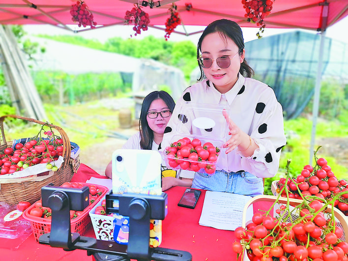 超凡農(nóng)業(yè)負(fù)責(zé)人宗規(guī)定最近有些犯愁,在天氣漸熱、溫度漸高的情況下,10畝地里種植的大棚小番茄加快成熟,出現(xiàn)了一定量的滯銷。 得知這一情況后,市場集團(tuán)農(nóng)發(fā)公司、綠禾網(wǎng)立即行動(dòng)起來,5月27日將“三服務(wù)”助農(nóng)直播車開進(jìn)超凡農(nóng)業(yè)的“田間地頭”,主播小燕、玥玥與宗規(guī)定一道,入大棚、看長勢、品味道,開啟了小番茄的直播秀。 宗規(guī)定從事農(nóng)業(yè)種植已近7年,兩年前在蘇溪鎮(zhèn)新樂村流轉(zhuǎn)了150畝田地,種植小番茄、草莓、葡萄等水果及部分蔬菜。其中,小番茄品名紅風(fēng)鈴,是省農(nóng)科院近兩年培植的新品種,具有產(chǎn)量高、抗病蟲害能力強(qiáng)等特點(diǎn),成熟期從3月底一直到7月初。 超凡農(nóng)業(yè)大棚里彌漫著小番茄特有的清香,它們密密麻麻地藏于葉間,顆顆圓潤飽滿,色澤通紅透亮,一串串猶如紅色的風(fēng)鈴。挑一個(gè)熟的放在口中,瞬間爆漿,甜中微酸、自帶鮮香的口感像極了小時(shí)候的味道。宗規(guī)定說,他家的小番茄施的是有機(jī)肥,全部利用蜜蜂授粉,自然坐果、自然成熟,不用任何甜蜜素、防腐劑,是無公害綠色水果。 去年,宗規(guī)定嘗試種了3畝小番茄,結(jié)果市場反應(yīng)良好,一直供不應(yīng)求,基地現(xiàn)場采摘價(jià)格高達(dá)每斤25元。宗規(guī)定今年擴(kuò)大了種植規(guī)模,沒想到卻遇到疫情,不僅價(jià)格不上去,銷量也是明顯受阻。 “現(xiàn)在我們批發(fā)價(jià)是每斤8元,銷量大概一天四五百斤!弊谝(guī)定計(jì)算過,按照每畝地產(chǎn)5000斤小番茄計(jì)算,接下去將有近5萬斤的量需要推向市場。因?yàn)榭傮w量大,他特別擔(dān)心后期銷售乏力。與綠禾網(wǎng)對接之后,宗規(guī)定發(fā)現(xiàn),不僅可以直接上架銷售小番茄,還能通過綠禾直播平臺讓更多消費(fèi)者了解這一好看又好吃的水果。 直播現(xiàn)場,簡易的棚子搭在田間,整串整串小番茄掛在架上,一筐筐一籃籃小番茄擺在桌上,充滿著濃濃的鄉(xiāng)土氣息!斑@顏色就像番茄口紅一樣正,顏值絕對爆表!薄罢媸呛贸缘猛2幌聛,我自己也訂了一斤。”……兩位主播使出十八般武藝,賣力地吆喝著。 為了此次直播,宗規(guī)定給出超底價(jià)每斤8.8元,共1000斤。一小時(shí)不到,這些小番茄就被搶購一空,不少消費(fèi)者還紛紛留言能不能補(bǔ)搶。整場活動(dòng)觀看人數(shù)超3000人。 記者了解到,今年以來,農(nóng)發(fā)公司和綠禾網(wǎng)已組織開展多次消費(fèi)助農(nóng)活動(dòng),依托綠禾網(wǎng)“源頭直播+線上銷售+配送到家”模式,將更多生態(tài)有機(jī)新鮮農(nóng)產(chǎn)品以優(yōu)惠價(jià)格推送給廣大市民,同時(shí)也有效解決農(nóng)產(chǎn)品受疫情影響供過于求的問題。 |