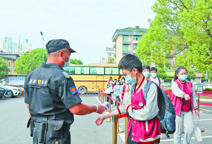 昨日7點30分起,考生陸續(xù)到達考點,經(jīng)體溫測量后有序進入。隨后,考生在身份信息核驗后進入考場?键c外,我市各相關職能部門組成專班隊伍,圍繞治安、交通、衛(wèi)生等展開合作,確保中考平穩(wěn)順利進行。