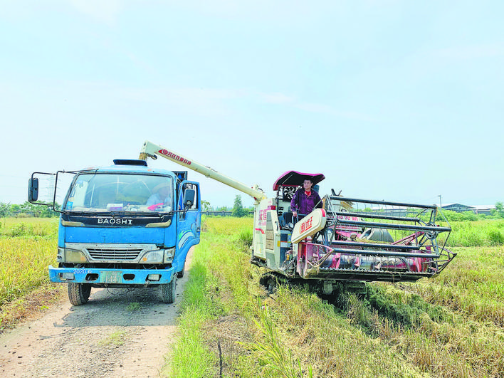 昨日,義亭鎮(zhèn)上宅村金色的田野上稻浪翻滾,一片片金黃稻穗迎風(fēng)搖曳,顆粒飽滿的稻穗壓彎了稻稈,4臺大馬力收割機(jī)正在田間緊張作業(yè),豐收的喜悅洋溢在種糧大戶樓國三的臉上。 “今年在義亭鎮(zhèn)上宅村和佛堂鎮(zhèn)龍溪村種植了4600畝早稻,初步測算畝產(chǎn)可達(dá)460公斤!睒菄f,受梅汛天氣影響,今年早稻收割比往年遲了一周時間,通過測土配方施肥等科學(xué)管理措施,產(chǎn)量卻比往年高。 據(jù)了解,今年全市早稻種植面積3.52萬畝,同比增長5.4%。目前,我市各地的早稻收割進(jìn)入了高峰期,市農(nóng)業(yè)農(nóng)村局的技術(shù)人員也第一時間到田間地頭指導(dǎo),加強田間管理,確保早稻顆粒歸倉。 |