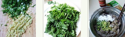 1、面條魚和花肉一起剁成細(xì)膩的餡料;