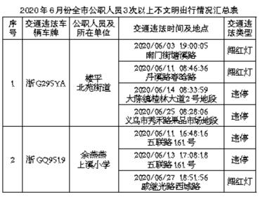 2020年6月期間,我市公職人員發(fā)生3次以上(含3次)不文明出行的情況共有2例,現(xiàn)予以公開曝光。希望各單位根據(jù)“公職人員帶頭開展文明出行”的工作要求,進一步加強學習、教育和督促,引導廣大公職人員引以為戒,爭做文明出行的表率,發(fā)揮應有的模范帶頭作用。