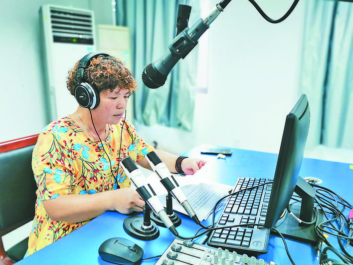 張蓮芝為村民播報(bào)首期《我們的電臺》。