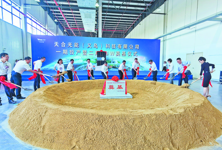 天合光能股份有限公司董事長高紀(jì)凡、常務(wù)副總裁曹博,市領(lǐng)導(dǎo)林毅、王健、虞秀軍、賈文紅出席儀式。 儀式上,市委書記林毅和高紀(jì)凡分別致辭,并為義烏天合光能一期組件成品揭幕。隨后,與會(huì)領(lǐng)導(dǎo)共同為項(xiàng)目二期奠基。 高紀(jì)凡在致辭中說,義烏精神深深感召著他們,義烏的營商環(huán)境是企業(yè)發(fā)展的重要?jiǎng)恿ΑL旌瞎饽茉诹x烏落地投產(chǎn),是企業(yè)發(fā)展史上一個(gè)新的里程碑,也將推動(dòng)光伏行業(yè)走向新的發(fā)展高度。當(dāng)前,義烏正在全力打造世界“小商品之都”,天合既是參與者也是貢獻(xiàn)者。接下來,天合將以奮斗者精神,以共擔(dān)共創(chuàng)共享的核心價(jià)值觀,為義烏經(jīng)濟(jì)社會(huì)發(fā)展貢獻(xiàn)天合的力量。 林毅表示,天合光能一期投產(chǎn)、二期奠基,對(duì)義烏具有標(biāo)志性意義,為義烏打造“萬畝千億”新產(chǎn)業(yè)平臺(tái)、成為全球太陽能高端制造龍頭企業(yè)重要集聚中心奠定了堅(jiān)實(shí)基礎(chǔ),給義烏帶來了產(chǎn)業(yè)結(jié)構(gòu)的優(yōu)化調(diào)整和轉(zhuǎn)型升級(jí),帶來了優(yōu)質(zhì)人才集聚,帶來了發(fā)展的新動(dòng)力和新動(dòng)能,推動(dòng)義烏經(jīng)濟(jì)社會(huì)高質(zhì)量發(fā)展。義烏將緊緊圍繞建設(shè)“兩個(gè)樣板”,持續(xù)優(yōu)化營商環(huán)境,讓為企業(yè)服務(wù)成為自覺和氣質(zhì),讓企業(yè)安心做好圍墻內(nèi)的事。 天合光能(義烏)科技有限公司高效太陽能電池組件項(xiàng)目于2019年4月16日正式簽約,用地面積約600畝,主要建設(shè)8GW高效太陽能電池組件生產(chǎn)基地,分兩期建設(shè)。一期于2019年6月27日開工建設(shè),兩期項(xiàng)目全面達(dá)產(chǎn)后,預(yù)計(jì)年銷售額超百億元。 據(jù)了解,天合光能是國家高新技術(shù)企業(yè),組件出貨量連續(xù)多年均排名全球前三。目前,已掌握國際先進(jìn)的多主柵半片雙面雙玻組件量產(chǎn)技術(shù),是世界領(lǐng)先的光伏組件供應(yīng)商和太陽能光伏整體解決方案提供商。 對(duì)義烏而言,義烏集聚吸引晶科、晶澳、天合光能、東方日升等多個(gè)光伏項(xiàng)目,直接提升了義烏在光伏產(chǎn)業(yè)中的話語權(quán),幫助義烏在打造世界級(jí)光伏產(chǎn)業(yè)集群上邁出了關(guān)鍵一步。既推動(dòng)義烏產(chǎn)業(yè)向價(jià)值鏈高端邁進(jìn),推動(dòng)義烏制造業(yè)的高質(zhì)量發(fā)展,也為義烏落實(shí)“六穩(wěn)”“六!、奮力實(shí)現(xiàn)全年目標(biāo)做出積極貢獻(xiàn)。 近年來,義烏正在加快形成光伏產(chǎn)業(yè)集群,這些光伏項(xiàng)目全部建成達(dá)產(chǎn)后,在研發(fā)、技術(shù)、規(guī)模、龍頭企業(yè)集聚度等方面都將具有世界級(jí)的舉足輕重的地位。目前,愛旭太陽能、晶科能源、天合光能和東方日升已先后實(shí)現(xiàn)投產(chǎn),晶澳科技7月9日土地摘牌,計(jì)劃年內(nèi)投產(chǎn)。 |