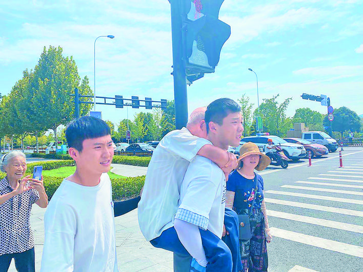 “當時天氣很熱,兩個老人從西江路口公交站點下車后,像是要過馬路,但又在原地躊躇不前。”劉嬋琳說,見此情景,她就主動上前詢問。 原來,其中一個老爺爺因中風,兩腿行動不便,此時又處于行車高峰時段?紤]到老人的特殊情況,劉嬋琳立即呼叫正在萬達廣場周邊執(zhí)勤的稠江專職消防隊隊員毛嘉俊和吳正輝,讓他們協助老人過馬路。兩名消防隊員趕到現場后,一人幫老人提物品,一人背著老人安全穿過人行道。 “老人本來不想麻煩我們,但我們考慮到天氣太熱,怕老人身體吃不消,就背著老人過馬路。”毛嘉俊說,這只是一件小事,沒什么的,在平時執(zhí)勤中,他們經常會為有需要的市民提供幫助。 背著老人過了馬路后,老兩口連忙表示感謝,老奶奶還把這一幕用手機拍了下來。這件事一傳開,不少市民紛紛點贊!靶』镒雍脴拥模钪械母袆訜o處不在,有些事情雖小,卻溫暖人心!笔忻窭钕壬f,義烏正需要更多這樣的正能量,這樣整座城市才會更加溫暖。 |