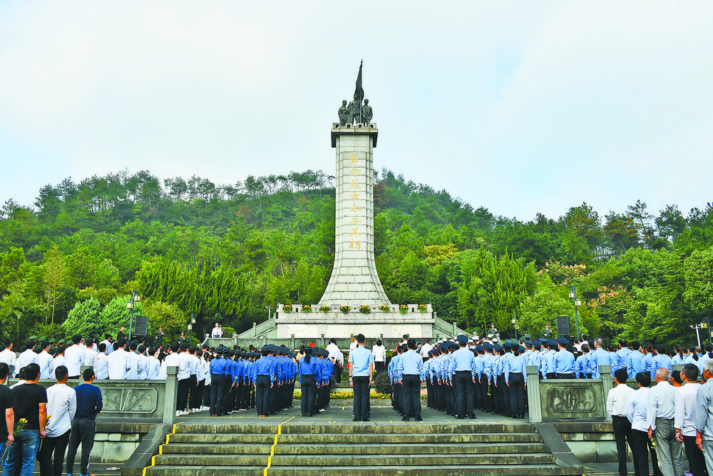 9月30日是我國設(shè)立的烈士紀(jì)念日。昨日上午,我市在長城公園舉行烈士紀(jì)念日公祭活動,緬懷英烈祭忠魂,撫今追昔思奮進(jìn)。 懷著無比崇敬的心情,帶著對革命烈士的無限哀思,市委書記林毅帶領(lǐng)市級班子領(lǐng)導(dǎo)與各界代表共600余人,齊聚在長城公園,向革命烈士默哀、鞠躬、敬獻(xiàn)花籃,以此向?yàn)橹袊嗣窠夥攀聵I(yè)和共和國建設(shè)事業(yè)英勇獻(xiàn)身的先烈致以崇高敬意。市長王健主持公祭儀式。 金秋的長城公園里,群山巍巍,松柏常青。矗立在公園內(nèi)的革命烈士紀(jì)念碑顯得格外寧靜莊嚴(yán),碑上“革命烈士永垂不朽”八個大字遒勁有力,紀(jì)念碑后是金字塔形的烈士墓名碑,上面鐫刻著429位烈士的名字。 上午9時許,王健緩步走上平臺,向烈士紀(jì)念碑行鞠躬禮,宣布烈士紀(jì)念日公祭儀式開始。伴隨著禮兵在烈士紀(jì)念碑前就位,全體肅立,奏唱《中華人民共和國國歌》,雄壯的歌聲催人奮進(jìn)。國歌畢,干部群眾肅立默哀,深情緬懷革命烈士。隨后,80名少先隊員代表獻(xiàn)唱《我們是共產(chǎn)主義接班人》,用嘹亮歌聲告慰烈士英靈。 天地英雄氣,千秋尚凜然。當(dāng)陵園內(nèi)響起深情的《獻(xiàn)花曲》,禮兵們鄭重抬起花籃,緩步走向革命烈士紀(jì)念碑,將花籃穩(wěn)穩(wěn)擺放到紀(jì)念碑基座上。林毅拾階登上紀(jì)念碑基座,仔細(xì)整理花籃緞帶。隨后,參加活動的各界代表向烈士行三鞠躬禮,共同瞻仰了烈士紀(jì)念碑,并繞烈士紀(jì)念碑一周,再次緬懷革命先烈。 誓言鏗鏘,丹心閃耀。參加公祭活動的社會各界代表紛紛表示,革命先烈用鮮血和生命鑄就的偉大精神,是愛國主義的精髓和靈魂,讓大家深刻了解和感受到革命先烈堅定執(zhí)著的理想信念、忠貞不渝的愛國情懷、密切聯(lián)系群眾的優(yōu)良作風(fēng)。今后,要繼續(xù)以革命先烈為榜樣,認(rèn)真學(xué)習(xí)革命先烈忠于革命理想、獻(xiàn)身革命事業(yè)的政治品格,為我市加快建設(shè)“兩個樣板”、搶當(dāng)“重要窗口”模范生貢獻(xiàn)新力量。 |