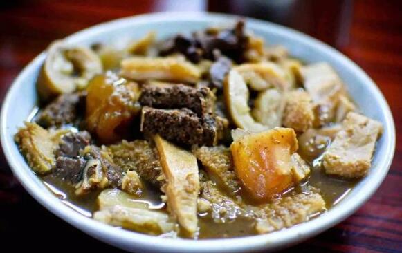 義烏古稱“烏傷”,為中國浙江省金華市下轄縣級市,眾所周知義烏的市場,享譽海內外,在這里,不僅能淘到自己心儀的產品,同樣這些美食也不要錯過,下個月義馬開跑,別忘品嘗這些義烏的美食補充能量噢。 取面、搓圓、摘面、包餡、拉扯,不到一分鐘,一塊小面團,變成一個薄如宣紙的大餅。烏人的第一頓飯,往往是從清晨的一碗白粥,一碟榨菜、一份加了蛋,加了辣椒的東河肉餅開始。一般加一個蛋餅的厚度恰好,雞蛋增加了餅的濕度,口感也不會很慢,咀嚼起來沒負擔。喜歡重口味的再蘸一點辣椒醬,很是開胃。 說起“上溪牛雜”的歷史,土生土長的上溪人都清楚,過去因為老百姓生活清貧,吃牛肉是一件奢侈的事情,好的牛肉大多會腌制起來等到過年吃。在平時,宰一頭牛,煮一鍋牛湯足以香飄四鄰八村,常年沾不到多少油腥的村民此時會手拿海碗,排隊等喝牛湯。而宰牛的上溪人家也特別大方,總是愿意為鄉(xiāng)鄰們免費提供牛湯!芭柚}巴,喝在嘴里,暖在心里! 義亭“油酥”,音譯了義烏土話的味道,也稱月餅,歷史悠久,是義烏傳統(tǒng)的中秋食品。義亭油酥是用上乘面粉、板油、紅糖、白糖、芝麻、核桃、花生仁、果絲等為原料,餅皮層次分明,酥而不散。義亭油酥用傳統(tǒng)的古法手工藝制作,這種傳承著老一輩智慧的月餅制作工藝吸引不少年輕人 佛堂白切羊肉,保留了羊肉的原汁原味,肉質緊密鮮嫩,不腥不膻,色鮮味醇,表皮上透著如玉般的溫潤,吃一口更是勁道十足,連皮帶肉切片,無論佐餐下酒,入口難忘。 佛堂千張面。是優(yōu)質面粉加入少量食鹽,用水揉成軟面,放置一定時間,搓面成若干小段,再用菜油抹上,上覆濕巾,食時把面隨拉隨扔,拉成長條,放沸水中煮熟后加佐料作餐。推薦佛堂老電影院里面的一家面館,經(jīng)典的老味道。 蕎麥老鼠,和好蕎麥團后,搓成大拇指粗的面條,切成寸許小段,以中食二指夾取面團,在米篩上按卷成中空,即成“滿背篩花,腹內兩疤”形似小老鼠故得名。外成篩孔花紋面塊,入沸水內與時令蔬菜同煮,做成后蕎麥的香味撲鼻,美味可口。 豆皮素包,義烏人過年必備,油潤白凈的豆腐皮浸潤之后,被裁成一張張小片,經(jīng)主婦的巧手一擺弄,豆腐青菜、蘿卜、糯米等餡料立即被包裹在小小的豆腐皮內。透過薄如蟬翼的豆腐皮,里面的餡料一覽無余。豆皮素包裹好之后用油炸成金黃色,端上桌的素包皮層松脆突出了豆香,里層鮮嫩增添了食欲。 “紅馃來了!”說話間,一盤熱騰騰、由紅色的糯米點綴在白色小圓團上的紅馃端上了桌。見到如此可愛的玩意,一旁的幼童不禁嚷叫了起來:“媽媽,我要吃!庇每曜訆A去一個,輕輕地咬一口,噴香的芝麻蜜汁就四溢而出,就著綿軟的糯米外皮,含在嘴里香甜軟滑。 南棗是義烏特有的名貴產品。清乾隆時,曾列為貢品,故又稱“京果”!吨袊a》第一集有“江南棗中佳品,是浙江義烏南棗”的記載。有養(yǎng)脾、平胃氣、潤心肺、止咳嗽、補五臟、治虛損等藥效。 義烏紅糖因色澤嫩黃而略帶青色,故又名為義烏青。素以質地松軟、散似細沙、純潔無渣、香甜可口著稱。紅糖的好處在于「溫而補之,溫而通之,溫而散之」,也就是我們俗稱的溫補。紅糖所含有的葡萄糖釋放能量快,吸收利用率高,可以快速地補充體力。有中氣不足、食欲不振、 營養(yǎng)不良等問題孩童,平日可適量飲用紅糖水。饋贈佳品。 |