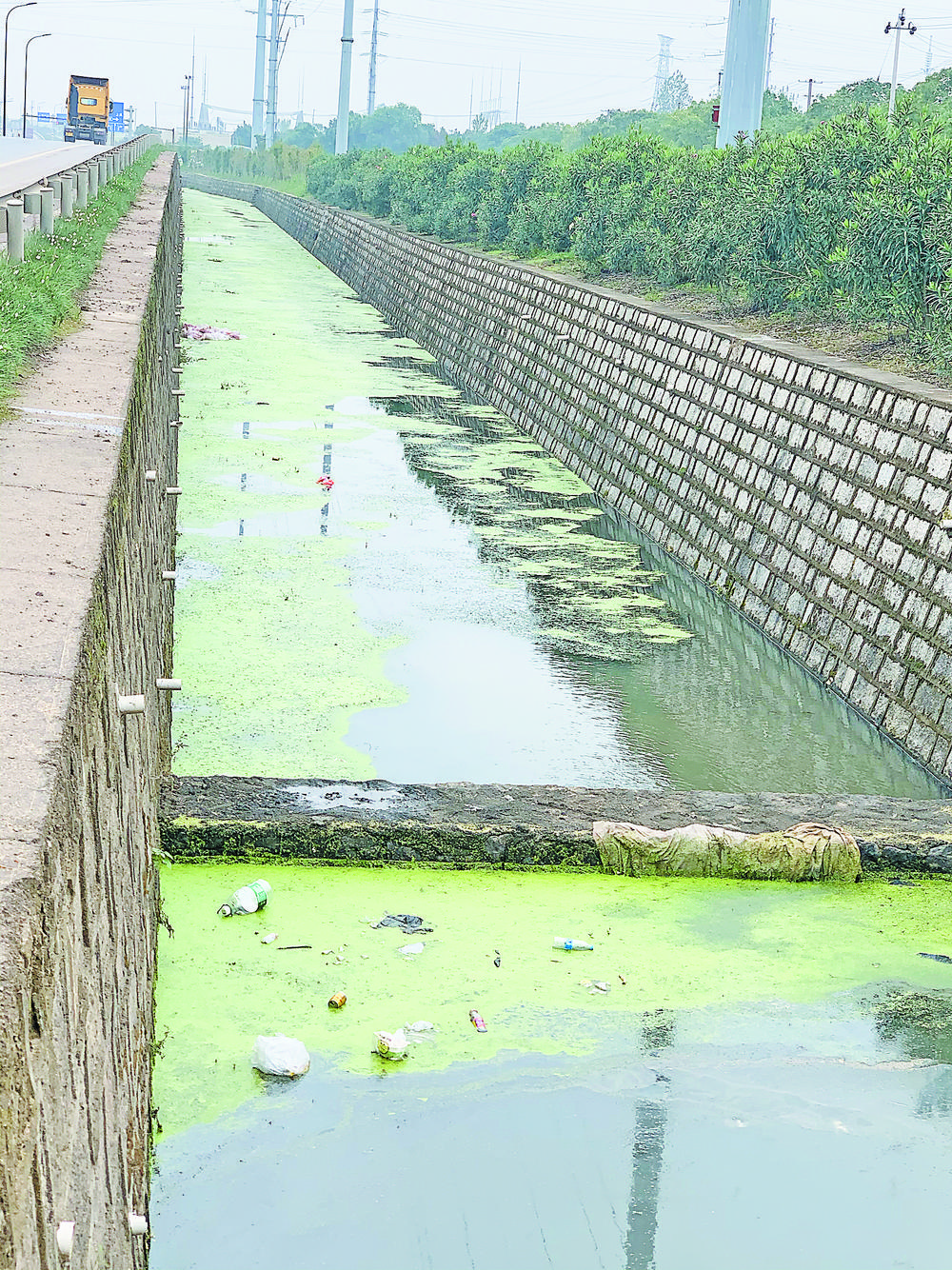 日前,有熱心市民向本報反映,在疏港快速路吳坎頭村段,輔道邊的河道內(nèi)漂滿了綠藻,還有不少垃圾,環(huán)境衛(wèi)生情況堪憂,希望有關(guān)部門來看看,是不是有污水進入河道。 昨日上午,記者來到疏港快速路吳坎頭村段,市民反映的河道是姑塘水庫引水渠新港村段,該段河道一直從橋頭村到疏港快速路與四海大道交叉口,全長2.2公里。記者沿著河道走,遠(yuǎn)遠(yuǎn)看去,整條河道是綠色的,水面上漂浮著大量的綠藻,中間還夾雜著塑料瓶、塑料袋、快餐盒等垃圾,部分水面上還漂著一層油污,水體呈灰綠色,但在走訪中,記者并沒有看到污水口。 河道里為什么會有這么多綠藻?對此,記者詢問了水利相關(guān)工作人員,該工作人員告訴記者,綠藻常附著于沉水的巖石和木頭,或漂浮在死水表面,一些營養(yǎng)豐富的水體中容易導(dǎo)致綠藻大量繁殖,并在水面形成一層藍(lán)綠色而有腥臭味的浮沫,稱為“水華”,加劇了水質(zhì)惡化,對魚類等水生動物,以及人、畜均有較大危害,嚴(yán)重時會造成魚類的死亡。建設(shè)美麗義烏促進會監(jiān)督團成員告訴記者,他們在檢查走訪中,也發(fā)現(xiàn)了姑塘水庫引水渠新港村段這一情況!拔覀冏咴L發(fā)現(xiàn),這條水渠已經(jīng)沒有活水進入,成了死水。再加上夏天秋天氣溫還比較高,就造成了綠藻大量繁殖。雖然沒有污水進入,但由于不少垃圾進入河中,也會導(dǎo)致水體有機物較多,水環(huán)境污染,而且河道內(nèi)的水有部分會流進銅溪! 在河道邊,記者看到立著一塊《義烏市鎮(zhèn)級河長公示牌》,上面明確了整治目標(biāo):河面無成片的漂浮廢棄物,河中無影響水流暢通的障礙物,河岸無垃圾堆放,河底無明顯污泥或垃圾淤積。但在走訪過程中,記者發(fā)現(xiàn)河道兩側(cè)有部分垃圾堆放,一些垃圾被風(fēng)吹進了河道。 記者根據(jù)公示牌的聯(lián)系方式電話聯(lián)系了村級河長吳璀云,他告訴記者:“河道內(nèi)綠藻、垃圾問題已經(jīng)有一段時間了,主要是因為沒有活水進來,再加上村里進行了舊村改造,吸引了不少外來人員租住,但基礎(chǔ)設(shè)施還沒有完善,確實有人會把垃圾扔進河道。9月份,我們已經(jīng)組織人員對河道進行了清理。才過去一個月,綠藻又長出來了,垃圾也是屢禁不止!睂Υ,吳璀云表示,接下去,他們將加強河道保潔工作,加大村里環(huán)境衛(wèi)生宣傳,同時制定長效機制,對亂扔垃圾者采取相應(yīng)措施,改善河道環(huán)境衛(wèi)生情況。 |