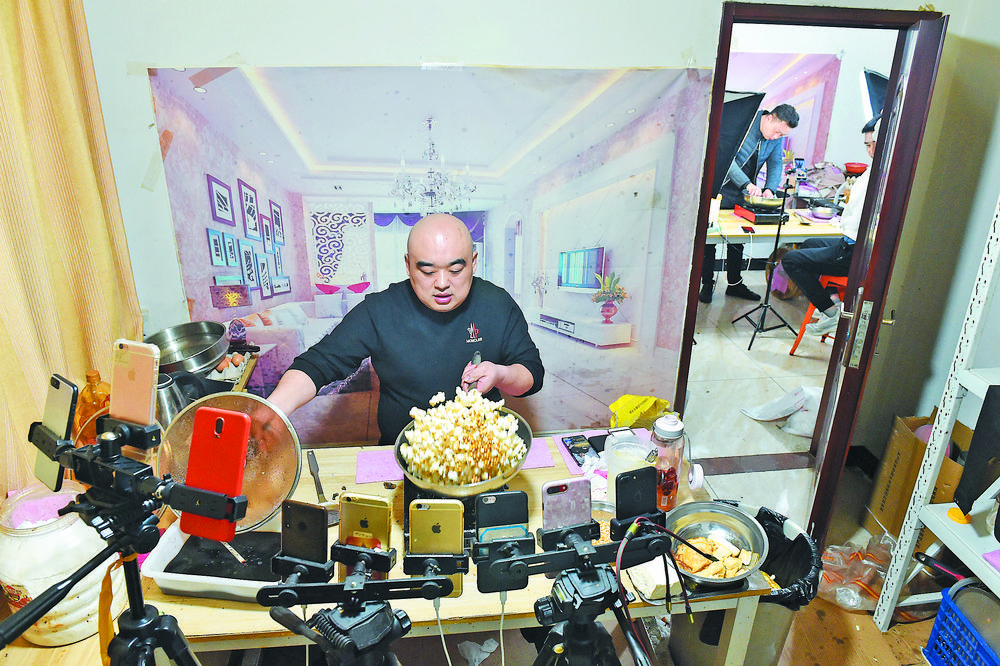 12月7日晚,福田街道東傅宅村一直播間,擁有7.1萬(wàn)粉絲的快手主播徐中強(qiáng)(“徐一刀”)正在現(xiàn)場(chǎng)直播銷(xiāo)售太空鍋。他作為知名電商直播“志春團(tuán)隊(duì)”的主力,現(xiàn)場(chǎng)展示了爆米花等絕技,當(dāng)晚直播間里太空鍋連連爆單。 隨著“雙十二”臨近,我市網(wǎng)紅直播村——江北下朱村、東傅宅村等地的電商直播團(tuán)隊(duì)都備足了貨源,提前啟動(dòng)“雙十二”系列直播帶貨促銷(xiāo)新模式。 |
