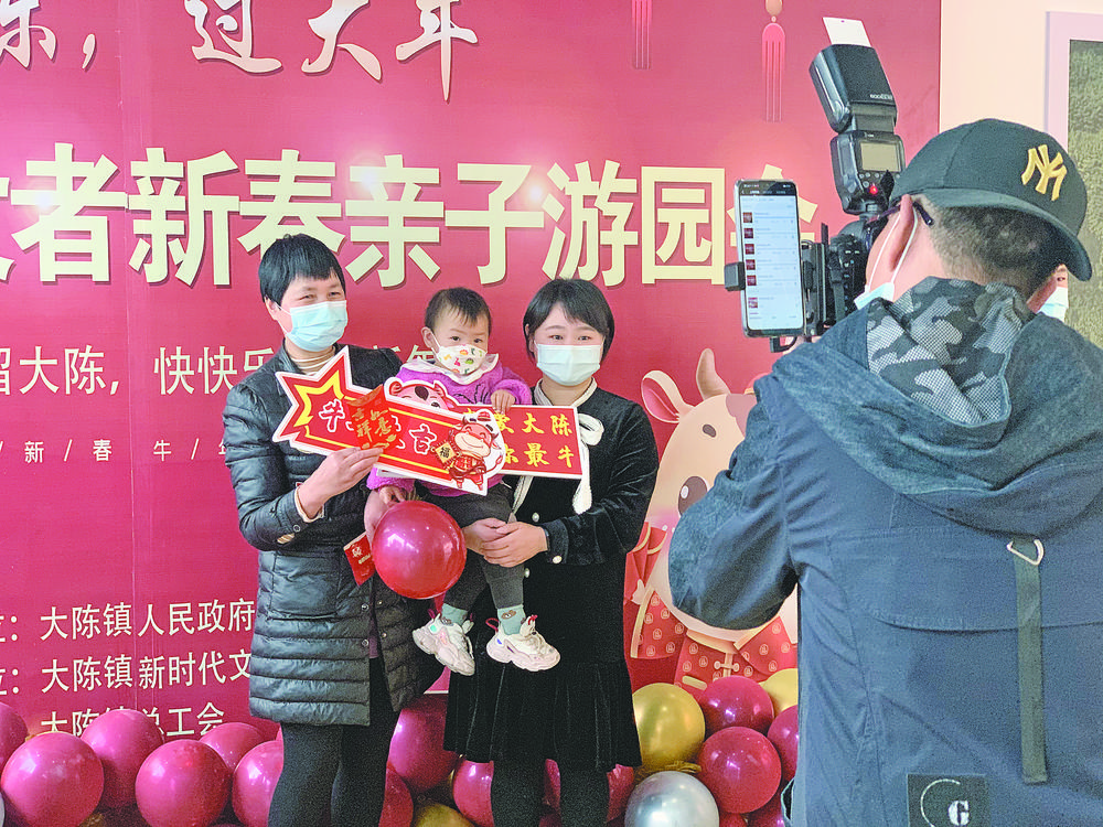 活動吸引了不少外來建設(shè)者帶著子女前來參加,大家積極參與跳格子、吹球等有趣的親子游戲,拿紅包、做小吃等互動引得現(xiàn)場歡聲笑語不斷。在專業(yè)攝影師的鏡頭前,不少家長和孩子拿著“在大陳 過大年”宣傳板合影留念,定格幸福的瞬間。