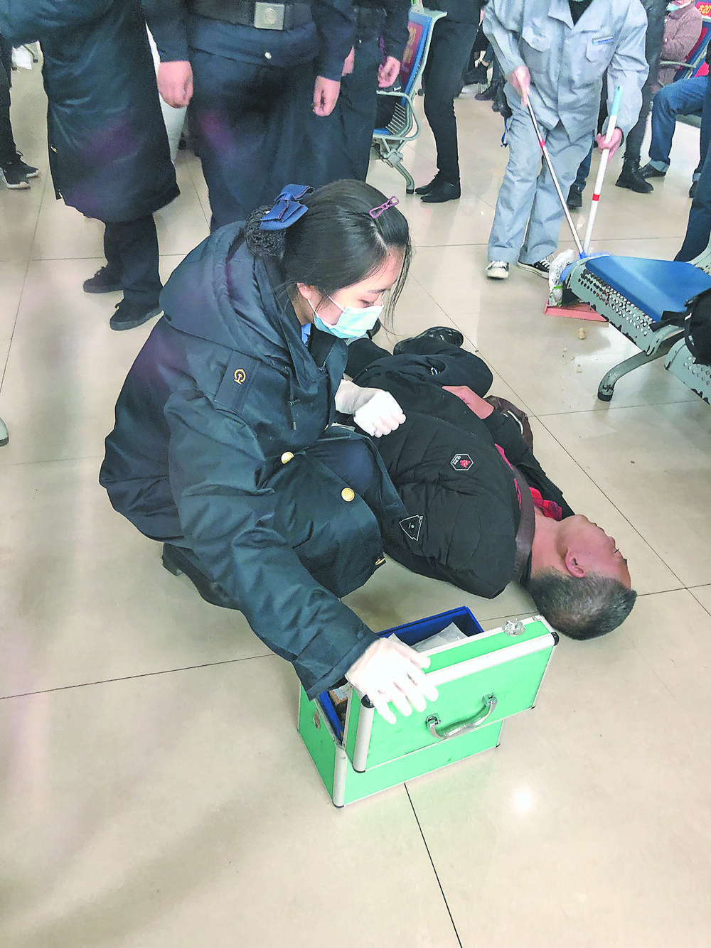 3月18日,一名乘客在義烏火車站候車室突然暈倒,所幸車站工作人員及時救援,乘客脫離了危險。 “服務臺,4號候車室有人暈倒了!碑斕13點21分,對講機里傳來一陣急促的呼叫聲。服務臺客運員金冬遇聽到后立刻拿起藥箱直奔二樓的4號候車室,一邊通知綜控廣播尋醫(yī),一邊報告客運值班員劉金蕾撥打120急救電話。 金冬遇來到4號候車室,只見一群人在圍觀,她趕緊撥開人群,一位旅客趴在地上一動不動。金冬遇心中一緊,連忙蹲下拍打旅客肩部并大聲呼喊:“先生,先生,你聽得到嗎?”但旅客依舊紋絲不動。劉金蕾此時也氣喘吁吁地到達現(xiàn)場查看旅客情況。不斷循環(huán)的尋醫(yī)廣播終于盼來了一男一女兩位醫(yī)護人員?瓦\員金冬遇馬上騰出空間,并疏散圍觀旅客,保持空氣流通。兩位醫(yī)護人員手法嫻熟,動作迅速地檢查了旅客的呼吸和脈搏,隨后繼續(xù)拍打旅客,旅客終于有了反應,不斷地打著噴嚏。見旅客有了反應,幾位工作人員終于松了口氣。 此時,服務臺客運員嚴麗萍已在進站口接應120救護車,并為其開通綠色通道。13點30分,120救護人員帶著急救裝備趕到候車室。經(jīng)120醫(yī)護人員初步觀察,發(fā)現(xiàn)該男子意識模糊,呼吸脈搏正常。隨后車站客運副站長盧敏嬌也趕到現(xiàn)在詢問具體情況,與其他工作人員一起,協(xié)助救護人員將旅客抬上擔架送上救護車,趕往就近醫(yī)院就醫(yī)。 據(jù)了解,該男子叫劉定國,貴州水城縣人,3月18日來到義烏火車站,想要乘坐12點59分的G7390次列車前往常州。據(jù)接診醫(yī)生初步判斷,該旅客由于過量飲酒導致不省人事,檢查結果已無大礙,現(xiàn)已脫離生命危險。 對此,鐵路部門提醒廣大旅客,喝酒傷身,小酌可以,切勿貪杯。如果旅客在旅行中發(fā)生任何困難,都可以聯(lián)系火車站工作人員,車站將盡量予以解決。 |