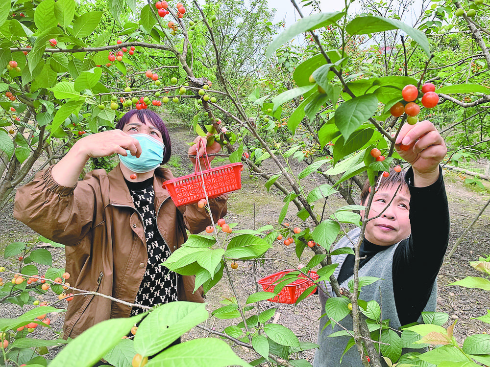 不知不覺,街頭水果店里悄然出現(xiàn)櫻桃的“身影”,蘇溪溪北村果園里的櫻桃也都紅了。4月7日,在溪北村蔣永根家的櫻桃園里,游客們正興致勃勃地摘著剛成熟的櫻桃。 “今年櫻桃上市較往年提早近一周,首批上市的櫻桃入園采摘價(jià)每籃50元左右。”蔣永根夫妻種植了3畝櫻桃,預(yù)計(jì)4月下旬將全面進(jìn)入成熟期。 “溪北村的櫻桃種植面積從2007年的不足十畝增加到現(xiàn)在的300畝,規(guī)模效應(yīng)逐步凸顯!毕贝妩h支部書記張階盛說,近年村里不斷整合資源,傳統(tǒng)果業(yè)與旅游產(chǎn)業(yè)相結(jié)合,把獨(dú)特風(fēng)景與體驗(yàn)融入水果銷售,休閑觀光果業(yè)發(fā)展迅速,采摘游活動(dòng)占果園收入的比例逐年提高。 |