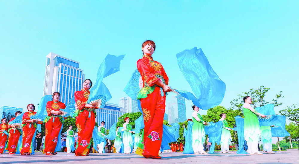 日前,在福田濕地公園,人們穿著華美的服飾,共同參加“迎建黨百年 享美好生活”浙江省民間音舞大型廣場(chǎng)展演義烏福田分會(huì)場(chǎng)活動(dòng)。近200人齊跳《紅船向未來(lái)》,與全省各地同頻獻(xiàn)禮建黨百年生辰。 據(jù)悉,此次活動(dòng)由浙江省文化和旅游廳主辦,省文化館、義烏市文化和廣電旅游體育局及福田街道黨工委、辦事處承辦,來(lái)自福田街道的13支隊(duì)伍參加了展演活動(dòng)。當(dāng)《紅船向未來(lái)》的音樂(lè)響起,舞蹈演員們?cè)谥魑枧_(tái)和福田濕地公園湖心圓臺(tái)上隨著歡快的音樂(lè)節(jié)拍,翩翩起舞,場(chǎng)面恢宏,氣勢(shì)磅礴。 |