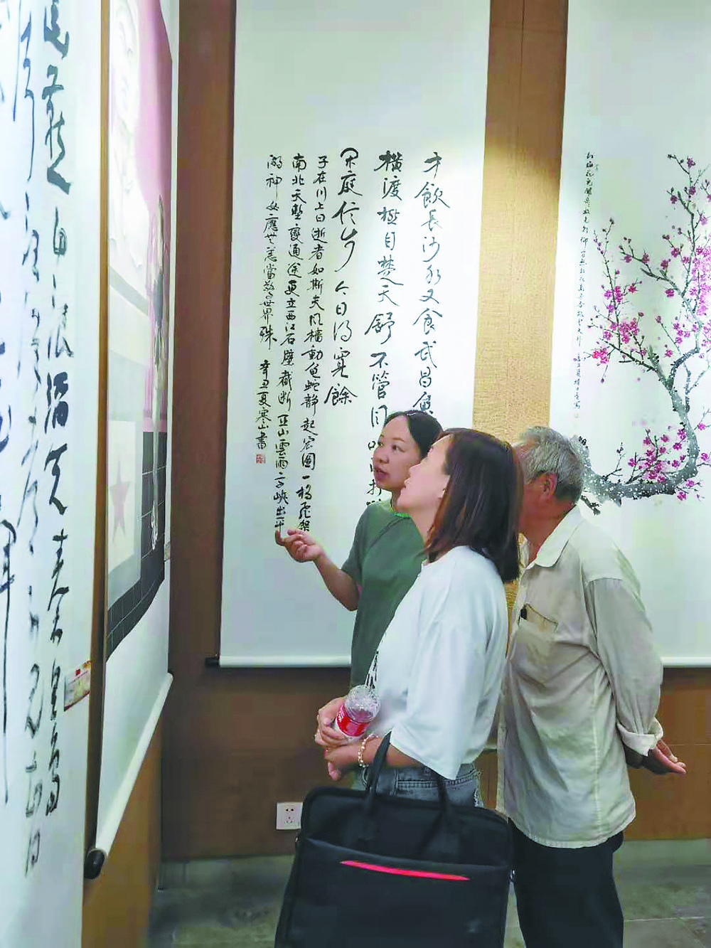丹青書盛世,翰墨頌黨恩。 6月9日,由市委宣傳部主辦,市文聯(lián)、義烏市書畫研究院、義烏市書法家協(xié)會、義烏市美術(shù)家協(xié)會聯(lián)合承辦的商城文藝大觀園《百年偉業(yè) 筑夢商城——義烏市慶祝中國共產(chǎn)黨成立100周年書畫作品展》在繡湖公園華川書舍開展。一幅幅散發(fā)墨香的書畫作品,吸引了眾多書畫愛好者駐足觀看。 進入展廳,一幅幅惟妙惟肖的書畫作品映入眼簾,前來觀展的群眾絡(luò)繹不絕,書畫愛好者們在參展作品前,細細品味,交流心得。參展作品涵蓋書法、國畫、油畫,內(nèi)容豐富,題材多樣,風(fēng)格各異。書畫家們以他們對生活的樸素情懷、審美情趣和藝術(shù)情感為我們展現(xiàn)了一個多彩的藝術(shù)世界。 此次展覽共展出80件書畫作品,均由我市藝術(shù)家潛心創(chuàng)作。一筆一畫、一草一木、一山一石、一景一物,盡顯了作者深厚的功力,浸潤著作者對家鄉(xiāng)的熱愛和對美好生活的追求,全面展示了義烏人民牢記黨史、熱愛祖國、熱愛生活的精神面貌,表達了義烏人艱苦創(chuàng)業(yè)、砥礪前行所取得的輝煌成就。 一百年風(fēng)雨兼程,一百年奮斗不息。面對建黨100周年的創(chuàng)作主題,有的藝術(shù)家用明艷的色彩鋪繪著城鄉(xiāng)街頭巷尾的生動畫面,再現(xiàn)義烏人尋常生活中一幕幕熟悉的場景;有的藝術(shù)家滿蘊情感、揮毫潑墨,在力透紙背的線條點畫中抒發(fā)著濃烈情感;有的藝術(shù)家用傳神的人物畫技法,生動再現(xiàn)與義烏這座城市發(fā)展息息相關(guān)的人物,掀開每一個人物形象背后珍藏的城市記憶。在這個特殊的日子里,我市廣大文藝工作者紛紛以藝術(shù)形式謳歌中國共產(chǎn)黨的光輝歷程,記錄時代的偉大變遷。 “陳望道先生是在義烏分水塘村簡陋的柴房中完成了《共產(chǎn)黨宣言》的翻譯工作,《共產(chǎn)黨宣言》中文全譯本的問世,有利推動了馬克思主義在中國的廣泛傳播,使廣大知識分子更全面更深入地學(xué)習(xí)研究和運用馬克思主義,在歷史上發(fā)揮了重要的作用,如同春雷震裂了舊思想的枷鎖,成為指引中華民族前行的航標(biāo)燈塔,用星火燎原之勢,照亮了整個黑暗的中國,我希望通過繪畫的語言和形式來為陳望道先生造像!薄缎腔稹馈芬划嬜髡叨←惸认蛴浾呓榻B。 細看此畫,畫中的望道先生穿著長衫,留著西洋頭,腳穿一雙布鞋,手握毛筆思考著,在凄風(fēng)苦雨中點亮了信仰的火種,給摸索中的中國帶來了理論之光,點燃了中國革命的燎原星火。 在展中,作品《望道故里》讓前來參觀的人紛紛點贊!傲(xí)近平總書記曾在不同場合多次講述陳望道先生在義烏老家分水塘村的柴屋內(nèi)翻譯《共產(chǎn)黨宣言》的故事,并意味深長地說:‘真理的味道很甜’,鼓勵我們講好‘中國第一紅色故事’!弊髡呒静ǚ榻B道,《望道故里》以全景式大畫面的現(xiàn)代水墨藝術(shù)形式,表現(xiàn)了陳望道故鄉(xiāng)分水塘新農(nóng)村的全景風(fēng)貌。畫面正中偏上的位置是新建的宣言廣場和紀(jì)念館,中軸線上突出宣言廣場上巨型的紅色黨旗,以全圖的水墨形式襯托出黨旗鮮艷奪目的光彩!巴拦世锸恰豆伯a(chǎn)黨宣言》中文首譯之地,成為新時期重要的紅色文化高地,用繪畫的形式來講述這個紅色故事。” 在觀展時,書畫愛好者們無不稱贊。“作為藝術(shù)交流,我們就是相互學(xué)習(xí)相互借鑒,這個實際上是一個思想的對接和碰撞?梢哉f是百花齊放!币灿械臅嫄酆谜哒J(rèn)為“氛圍很好,從開幕式到現(xiàn)在,參觀的人很多。也是我們書畫愛好者一次極好的學(xué)習(xí)提高的寶貴機會,以后可以創(chuàng)作出更好更多的作品。” “大雨落幽燕,白浪滔天,秦皇島外打魚船。一片汪洋都不見,知向誰邊……”這件書法作品內(nèi)容選取的是毛主席詩詞,作者樓之東站在畫前向記者介紹,此作品緊緊圍繞建黨百年華誕的主題,以草書的書體創(chuàng)作,表達了毛主席詩詞的大氣磅礴和節(jié)奏感強的藝術(shù)風(fēng)格!皶嬎囆g(shù)不僅弘揚中華民族優(yōu)秀傳統(tǒng)文化,還能陶冶情操。” 一位帶著孩子的老先生站在作品前,“我經(jīng)常在這邊散步,看到這個宣傳,就想著要帶我孫子孫女過來看看,漲點見識! 100年來,中華民族由不斷衰落到根本扭轉(zhuǎn)命運、持續(xù)走向繁榮富強,詮釋了一個擁有五千年文明歷史的偉大民族自強不息、堅韌不拔、迎難而上、永不言敗的偉大飛躍。在此次書畫作品展中,義烏文藝界用文藝特有的方式,來慶祝建黨100周年,用藝術(shù)作品來表達和謳歌偉大祖國取得的光輝成就。 今年是中國共產(chǎn)黨成立100周年,也是學(xué)習(xí)推廣義烏發(fā)展經(jīng)驗的第15年,希望通過此展覽進一步加強書畫愛好者間的交流與合作,促進提高我市書畫藝術(shù)的整體水平,同時讓廣大藝術(shù)家不斷創(chuàng)作出更多歌頌黨、歌頌人民的優(yōu)秀作品,為慶祝中國共產(chǎn)黨成立100周年獻禮。 |