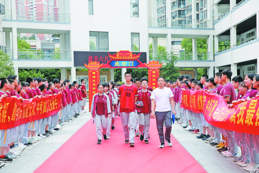 昨日,2021年初中畢業(yè)學(xué)業(yè)水平考試正式開考,我市共11804名考生報名參加考試。全市設(shè)9個考點(diǎn),分別為佛堂鎮(zhèn)中、春晗學(xué)校、稠江中學(xué)、后宅中學(xué)、廿三里初中、蘇溪鎮(zhèn)中、繡湖中學(xué)、稠州中學(xué)和賓王中學(xué),共397個考場。 為保證廣大考生和考務(wù)工作者生命安全和身體健康,各考點(diǎn)均配備了充足的防疫設(shè)備和物資;考點(diǎn)外,相關(guān)職能部門圍繞治安、交通、衛(wèi)生等展開合作,確保中考平穩(wěn)有序進(jìn)行。 圖為考生帶著師生的祝福,昂首穿過“成功門”前往考點(diǎn)。 |