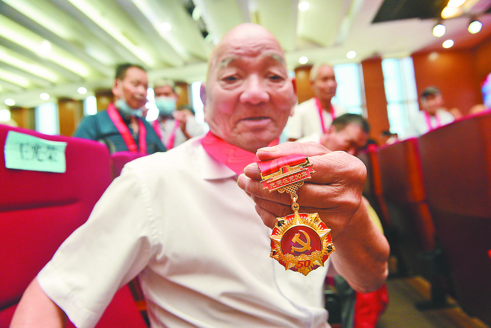 6月23日上午,福田街道舉行“光榮在黨50年”紀念章頒發(fā)儀式,向街道轄區(qū)內(nèi)347老黨員頒發(fā)了“光榮在黨50年”紀念章。 作為中國共產(chǎn)黨成立100周年慶祝活動的重要組成部分,6月起,我市全面啟動“光榮在黨50年”紀念章頒發(fā)工作,全市將有6500余名老黨員獲頒紀念章。據(jù)了解,“光榮在黨50年”紀念章,通徑50毫米,材質(zhì)為紫銅、黃銅和鋅合金,以黨徽、五角星、旗幟、豐碑、向日葵、光榮花、光芒等為主要元素。 |