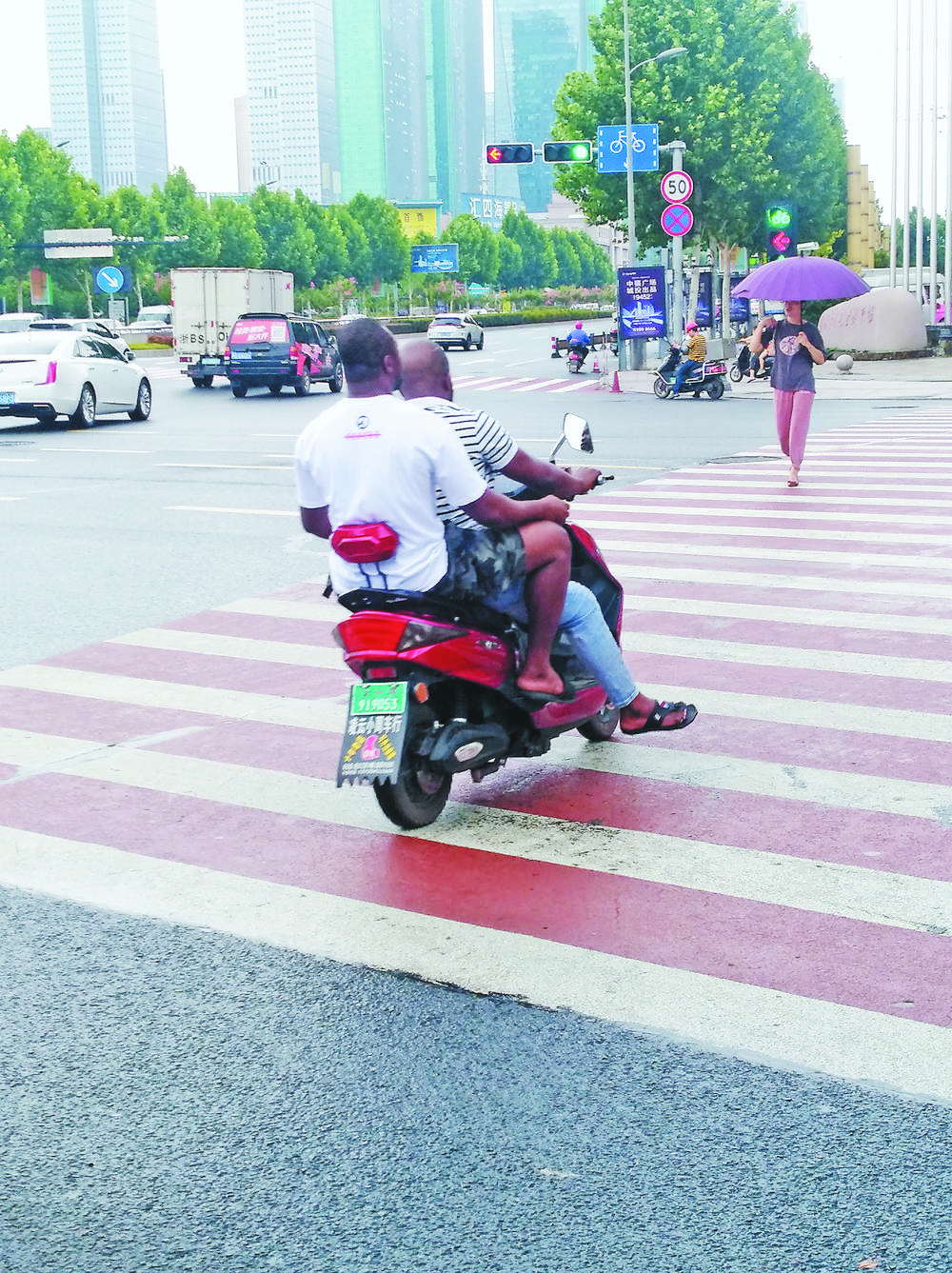 電動(dòng)自行車因其方便快速的特點(diǎn),已成為不少市民出行的首選交通工具。在義烏這座車水馬龍的城市里,電動(dòng)自行車不僅是城市的一道“風(fēng)景線”,還承載著騎車人及其家庭的安全與幸福。但近來有不少市民反映,街頭道路上電動(dòng)自行車闖紅燈、接聽電話、不戴頭盔、逆向行駛、與機(jī)動(dòng)車搶道等不文明交通行為十分普遍,尤其是在中午或晚上的一些時(shí)段。 昨日中午,記者一行來到稠州北路與城北路交叉口路段實(shí)地采訪,發(fā)現(xiàn)電動(dòng)自行車不文明騎行甚至違法騎行現(xiàn)象確實(shí)普遍存在,有的危險(xiǎn)行為真讓人后背直冒冷汗。 現(xiàn)象一:闖紅燈 昨日中午12時(shí)30分左右,稠州北路與城北路交叉口。 稠州北路直行人行道兩側(cè)的行人信號燈比機(jī)動(dòng)車直行信號燈提前幾秒變成紅色,兩側(cè)有一些行人和電動(dòng)自行車自覺在等候區(qū)止步。忽然,一輛電動(dòng)自行車沖了過來,與城北路綠燈放行的機(jī)動(dòng)車“擦身而過”。約半分鐘后,人行道的信號燈還是紅燈,但有兩輛電動(dòng)自行車迎著對向的紅燈沖了過去。在短短七八分鐘時(shí)間里,記者發(fā)現(xiàn)有十多輛電動(dòng)自行車闖紅燈,害得起步行駛或者正常通行的機(jī)動(dòng)車連連剎車避讓。 在路口,一些行人說,電動(dòng)自行車不怕“電子眼”,不用擔(dān)心扣分和罰款,一些電動(dòng)車車主對“紅燈停、綠燈行”這一最基本交通規(guī)則置若罔聞,對紅燈熟視無睹,照闖不誤。 現(xiàn)象二:邊騎車邊用手機(jī) 站在稠州北路與城北路交叉口,10多分鐘內(nèi)就發(fā)現(xiàn)有至少20名電動(dòng)車騎行人邊騎車邊用手機(jī)。 城北路人行道綠色信號燈亮起,行人、自行車、電動(dòng)自行車“齊發(fā)”。人流中,有兩名電動(dòng)自行車騎行人單手騎車,另一只手卻端著手機(jī),眼睛“瞟”著手機(jī)屏幕,嘴里還不停地說著什么。 一些路人表示非常感慨,騎電動(dòng)自行車撥打電話的現(xiàn)象太普遍了,有的電動(dòng)自行車還開得飛快,讓人看得揪心。 現(xiàn)象三:逆行,搶占機(jī)動(dòng)車道 稠州北路往國際商貿(mào)城方向,右側(cè)通行非機(jī)動(dòng)車道上,不時(shí)可以看到電動(dòng)自行車迎面逆向而來的情景,而在稠州北路與城北路交叉口能不時(shí)看到,一些電動(dòng)自行車不走斑馬線、非機(jī)動(dòng)車道,卻行駛在機(jī)動(dòng)車道上,甚至在道路圓盤中間,還不時(shí)有電動(dòng)自行車在機(jī)動(dòng)車道上飛馳而過。 當(dāng)天下午1時(shí)左右,記者發(fā)現(xiàn)在路口等候紅綠燈的十幾輛電動(dòng)自行車中,僅有四五輛走斑馬線,其余的全都是綠燈一亮就馬上行駛到機(jī)動(dòng)車道上,與機(jī)動(dòng)車一起搶道過路口。有的電動(dòng)自行車搶道過了十字路口后,為了不跟眾多電動(dòng)自行車擠在一起,居然沿著稠州北路的機(jī)動(dòng)車道一直往前行駛。還有一些電動(dòng)自行車過了路口后干脆直接駛?cè)霗C(jī)動(dòng)車道,更甚者,為了趕時(shí)間,居然在機(jī)動(dòng)車之間穿梭騎行,著實(shí)讓人捏把冷汗。 現(xiàn)象四:不佩戴頭盔 路口,騎行電動(dòng)自行車不戴頭盔,成為又一個(gè)比較普遍的現(xiàn)象。 在城北路左轉(zhuǎn)往國際商貿(mào)城方向行人等候區(qū),記者發(fā)現(xiàn)3個(gè)燈次等候間隔,大約有四五十輛電動(dòng)自行車經(jīng)過,其中10%左右騎行人沒有戴頭盔。尤其值得一提的是,不戴頭盔的騎行人中,有不少人的車頭處其實(shí)掛著頭盔。 另外,電動(dòng)自行車載人、隨意掉頭、任意穿插等不文明規(guī)范行為也比較常見。采訪中,不少市民表示,電動(dòng)自行車的確是很多居民出行的主要交通工具之一,但交通違法行為也愈演愈烈,不僅有礙城市交通暢通,而且刮擦、碰撞等交通事故頻發(fā),給交警管理、執(zhí)法、事故處理等工作出難題,市民的生命財(cái)產(chǎn)安全也難以得到保障。希望引起大家的高度重視,有關(guān)部門應(yīng)該聯(lián)手強(qiáng)化電動(dòng)自行車管理,讓它既環(huán)保又安全。 |