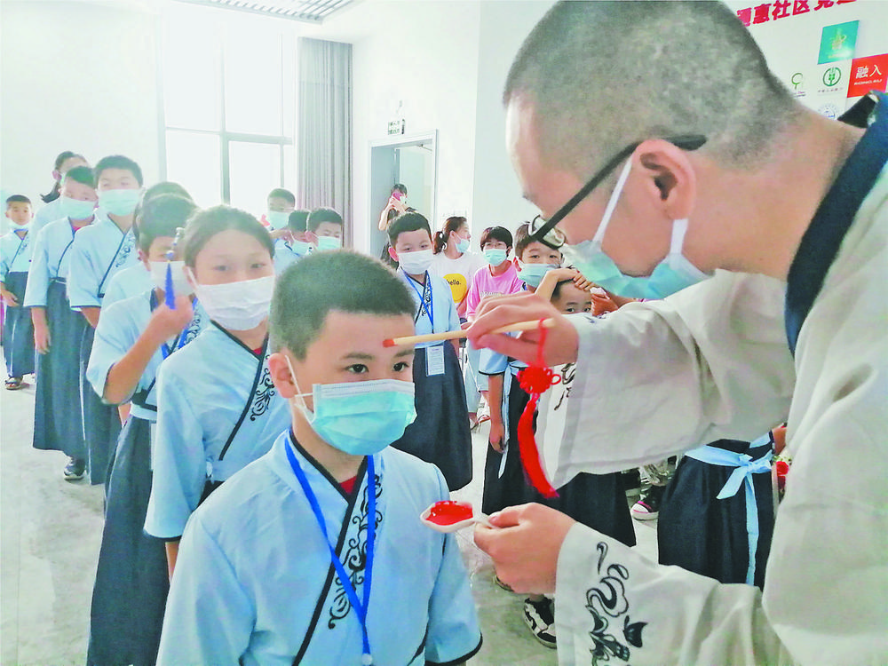 正衣冠,拜孔孟像,拜父母,朱砂開智……在老師的悉心指導(dǎo)下,孩子們統(tǒng)一著裝,學(xué)得有模有樣。這是昨日上午9時(shí)在稠城街道通惠社區(qū)黨群服務(wù)中心舉行的一場“開蒙禮”。 當(dāng)天上午,“童‘芯’相聚,快樂暑期”公益夏令營啟動(dòng),吸引了30多名孩子到場參加。據(jù)了解,本期公益夏令營為期5天,由通惠社區(qū)黨委、“荷花芯”商圈黨建聯(lián)盟主辦,參加對(duì)象以轄區(qū)企業(yè)員工和外來建設(shè)者的子女為主,年齡在6至10歲。 “上午9時(shí)開始上課,下午5時(shí)放學(xué),社區(qū)統(tǒng)一安排中餐和午休!蓖ɑ萆鐓^(qū)相關(guān)負(fù)責(zé)人說,為豐富孩子們的暑期生活,在努力確保安全前提下,主辦方精心安排了手工、美術(shù)、文學(xué)、氣象等課程,每天都安排時(shí)間讓他們完成暑假作業(yè),并開展一些有意義的互動(dòng)游戲。 據(jù)了解,當(dāng)前在我市,公益夏令營大多采用半天制或者上下午分開的形式,像通惠社區(qū)這樣“全托”的并不多見。為了推進(jìn)夏令營安全有序地開展,通惠社區(qū)抓實(shí)抓細(xì)防疫工作,每天家長送孩子進(jìn)教室之前都要測溫、亮碼、戴口罩,上課期間保持有效距離,放學(xué)接送時(shí)工作人員認(rèn)真核對(duì)信息,家里如有風(fēng)險(xiǎn)區(qū)域來義人員等情況,就及時(shí)報(bào)告。 “社區(qū)做得挺用心的,做公益不說,還安排得很充實(shí),這樣一來,我們家長就能更安心工作,孩子更開心!痹阢y泰上班的夏女士說,她和丈夫都是外地人,今年8歲的兒子在上溪上小學(xué),如果沒有夏令營,要么把孩子送回老家一段時(shí)間,要么就花錢送輔導(dǎo)班。 此次銀泰有19名員工的孩子參加了本期公益夏令營;顒(dòng)當(dāng)天,義烏之心、義烏銀泰、新華書店、天成大廈被授予“黨群服務(wù)E站”牌。另外,新天地精品商廈成為該街道首個(gè)新時(shí)代文明實(shí)踐點(diǎn)。 “以需求為導(dǎo)向,充分利用現(xiàn)有資源優(yōu)勢,通過開展一些接地氣、有熱氣的活動(dòng),為基層治理、服務(wù)企業(yè)、普惠居民貢獻(xiàn)一份力量!蓖ɑ萆鐓^(qū)黨委書記吳文斌說,“荷花芯”商圈黨建聯(lián)盟是當(dāng)前通惠社區(qū)著力打造的一個(gè)黨建品牌,主要通過黨建引領(lǐng)來帶動(dòng)轄區(qū)企業(yè)、共建共駐單位、社會(huì)組織等共同參與社區(qū)治理,為轄區(qū)居民提供培訓(xùn)教育、便民服務(wù)、文化活動(dòng)等資源,探索企業(yè)、商戶共建共贏,實(shí)現(xiàn)社區(qū)、企業(yè)、共建共駐單位互助互利的局面。 |