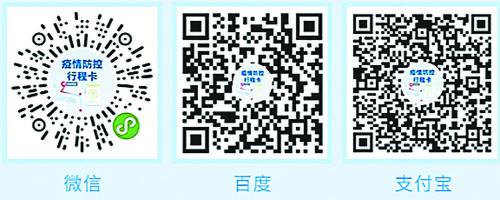 附件 疫情防控行程碼查詢 方式一:微信、百度或支付寶APP掃描“行程卡”對(duì)應(yīng)的二維碼(見下圖),或各大應(yīng)用商店搜索下載“通信行程卡”,輸入手機(jī)號(hào)、驗(yàn)證碼,同意授權(quán),點(diǎn)擊查詢行程卡會(huì)顯示過去14天內(nèi)到達(dá)或途經(jīng)的國(guó)家或地區(qū)。 方式二:通過短信方式查詢:發(fā)送短信CXMYD到所屬運(yùn)營(yíng)商(電信10001/移動(dòng)10086/聯(lián)通10010)進(jìn)行查詢。 |
