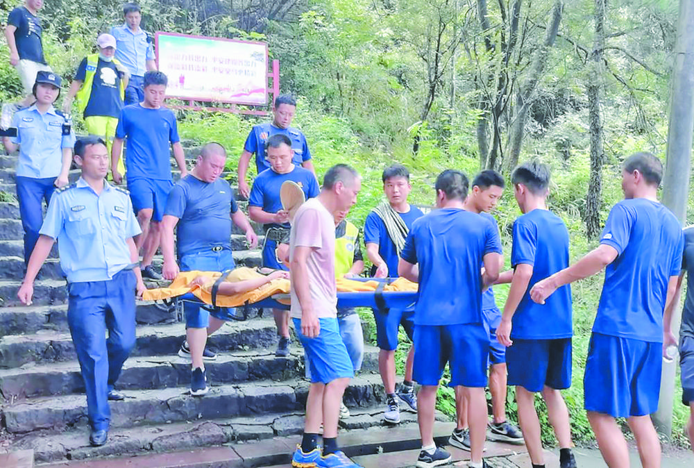 8月16日下午,后宅街道專(zhuān)職消防隊(duì)的隊(duì)員正在后宅中學(xué)的跑道上進(jìn)行3公里體能訓(xùn)練。突然,指揮中心傳來(lái)出警信號(hào),一名35歲女子在附近德勝巖山頂因中暑暈倒,急需救援。 隊(duì)員們聞?dòng)嵑,顧不上換衣服,迅速趕赴現(xiàn)場(chǎng)。德勝巖海拔380余米,普通人爬上去就要一個(gè)多小時(shí)。消防員攜擔(dān)架快速攀登,到達(dá)現(xiàn)場(chǎng)后找到昏迷的女子莊女士。經(jīng)現(xiàn)場(chǎng)醫(yī)生確認(rèn),其生命體征正常,消防員對(duì)莊女士進(jìn)行了固定,7名消防員接力用擔(dān)架抬下山。16時(shí)13分,消防員成功將莊女士送達(dá)山腳,抬上120急救車(chē)(如下圖)。從出警到救下人員,用時(shí)僅30余分鐘。 救援當(dāng)天雖然沒(méi)有大太陽(yáng),但在悶熱的天氣下,消防隊(duì)員們一刻也不能松懈,跟時(shí)間賽跑。從山上下來(lái),每位救援人員的衣服已經(jīng)濕透,都能擰出水來(lái)!皶r(shí)間就是生命,當(dāng)時(shí)也沒(méi)有多想,就想著趕緊爬到山頂把人救出來(lái)。”參與救援的一名消防員說(shuō)。 |
