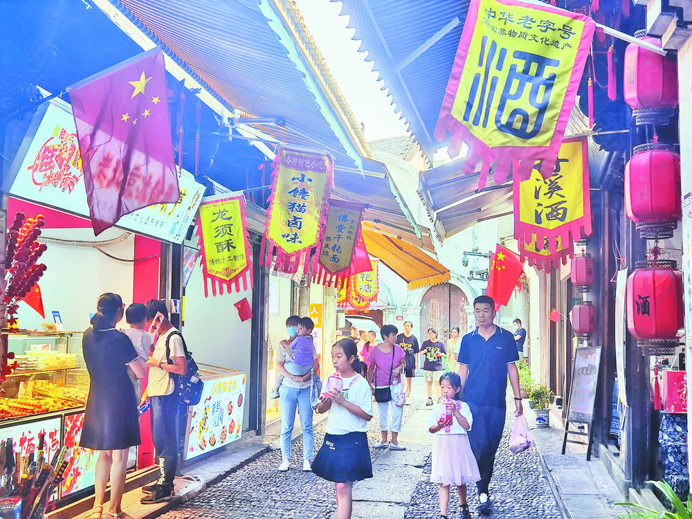 最美的風(fēng)景,就是文化的綻放。 國慶佳節(jié),豐富多彩的文化大餐為廣大義烏市民推開藝術(shù)之門,讓大家感受濃濃的文化氣息,樂享精彩的文化生活。領(lǐng)略義烏歷史文化的同時(shí),盡賞別樣風(fēng)光,樂享假日。 鄉(xiāng)村游受青睞 國慶假期前三天,大陳鎮(zhèn)迎來客流高峰。“浪漫八都”“竹韻九都”“古韻十都”美麗精品線上人流不息,游客們前來品嘗當(dāng)?shù)氐拿牢缎〕,呼吸清新空氣,領(lǐng)略秀麗風(fēng)光。 傳統(tǒng)的休閑觀光旅游注重寧靜,義烏國際賽車公園主打運(yùn)動,為鄉(xiāng)村旅游注入了新的活力。在這里,游客可以感受賽車漂移、賽車特技體驗(yàn)、真人CS、動力滑翔傘等項(xiàng)目。假期內(nèi)游客絡(luò)繹不絕,日均客流量達(dá)到8000人。親子卡丁車項(xiàng)目吸引一大批兒童躍躍欲試,刺激的山地越野車更適合大人。 “我們的卡丁車賽道是一個(gè)比較專業(yè)的戶外場地,整個(gè)是柏油賽道的設(shè)計(jì),是年輕人游樂和競技的一個(gè)平臺,可以好好體驗(yàn)一把速度與激情!辟愜嚬珗@負(fù)責(zé)人介紹說。 黃金周內(nèi),馬畈景區(qū)非常火爆,人流如織,前三天游客在15000人以上。景區(qū)內(nèi)栽滿甘蔗、棉花、向日葵、水稻等農(nóng)作物,20多萬株向日葵在陽光下昂著頭,小朋友們有的在稻田里抓魚,有的坐上小火車欣賞樂園的風(fēng)光,還有的大膽體驗(yàn)了一番馬畈滑草場彩虹滑道的刺激。 國慶期間正式開放的恒風(fēng)缸窯景區(qū)親子游樂園也吸引了眾多市民。松鼠部落、蹦蹦云、叢林穿越、酷跑卡丁車、竹林燒烤、全地形越野車等網(wǎng)紅游樂項(xiàng)目讓人們興致盎然!氨谋脑祈(xiàng)目真好玩,全地形山地車也超刺激,有機(jī)會還要帶我家孩子再來玩!10月2日上午,來自赤岸鎮(zhèn)的王先生帶著孩子搶先體驗(yàn)了好幾個(gè)游玩項(xiàng)目,一通玩下來,直呼過癮。 享受游玩的同時(shí),美食給假期增添了濃濃的色彩。義北農(nóng)場的飄香獼猴桃開始成熟,已經(jīng)有不少游客開啟了水果采摘游。走進(jìn)義烏植物園,2021“舌尖上的中國”義烏金秋美食節(jié)在義烏植物園幸福廣場舉辦,讓人“一站式”吃遍全球美食。 中國文化熠熠生輝 在國慶這個(gè)承載著國家、民族凝聚力的特殊節(jié)日里,義烏各界群眾以飽滿的熱情積極投入到慶;顒又校桧、贊美并祝福偉大的共和國和偉大的中國共產(chǎn)黨,抒發(fā)對新時(shí)代幸福生活的真摯感受,讓家國文化熠熠生輝。 國慶期間,城西街道何斯路村近百名村民齊聚文化禮堂前,共慶中華人民共和國成立72周年。伴隨著莊嚴(yán)的國歌聲,擎旗手揮動右臂,讓鮮艷的五星紅旗招展天空。 在國歌響起、國旗升起的那一刻,人們都情不自禁地挺直腰板,目不轉(zhuǎn)睛地凝視著國旗并高唱國歌!奥犞鴩,看著國旗升起,想到我們的祖國越來越強(qiáng)大,我很激動,也感到很幸福!焙握粮峭诵堇辖處煟衲暌85歲,他見證了新中國72年發(fā)展的全歷程,也見證了何斯路村從貧困落后到成為中國美麗田園村的發(fā)展之路!敖窈蟮娜兆,我們要繼續(xù)跟著共產(chǎn)黨走,不忘初心,建設(shè)美好家園! 為深化與國同慶的節(jié)日內(nèi)涵,國慶期間,佛堂鎮(zhèn)花園口村,廿三里街道陶店村、里兆村等地的文化禮堂相繼舉行了莊嚴(yán)的升國旗儀式,弘揚(yáng)愛國文化,強(qiáng)化家國情懷,向偉大的祖國致敬。 同時(shí),為營造熱烈喜慶的國慶氛圍,給義烏市民帶來歡樂祥和的節(jié)日氣氛,充分展示世界“小商品之都”的城市風(fēng)貌,城投集團(tuán)下屬城建資源公司組織人員對縣前街、城中中路、丹溪路、工人北路等市區(qū)主次干道及雞鳴閣、植物園景區(qū)懸掛國旗共計(jì)1200余組。 路過的市民何先生表示:“我的心情很激動,看到這些五星紅旗,看到我們的生活一天比一天美好,一天比一天富裕,我衷心祝愿祖國的未來更加繁榮、昌盛。” 書香中靜享假日 對于不想出門逛景點(diǎn)的市民來說,到圖書館尋覓一縷書香,靜靜享受閱讀時(shí)光,也是個(gè)不錯(cuò)的休閑度假方式。 10月1日上午10時(shí),已經(jīng)有不少市民來到市圖書館總館,他們有的在全神貫注地閱讀書籍,有的在書架前仔細(xì)尋找著自己喜歡的圖書,館內(nèi)秩序井然。市民許展飛說:“圖書館氛圍好,比較安靜,學(xué)習(xí)氛圍挺濃的。假期周邊旅游的人比較多,還不如趁假期來給自己充充電,收獲比平時(shí)更多! 市民張女士則說:“我覺得來書店挺好的,從小培養(yǎng)孩子的讀書習(xí)慣。這個(gè)氛圍特別好,尤其是南門街分館可以待到晚上9點(diǎn)。我們經(jīng)常來! 樂享“文藝假期” 文化是城市靈魂的棲息地,能夠豐富大眾的精神世界;藝術(shù)可以照亮生活,承載著人們對于美好生活的向往。 10月1日晚上7點(diǎn),義烏劇院正在上演的《三打白骨精》折子戲?qū)觥H珗?6次大笑,16次鼓掌——這是記者在現(xiàn)場的記錄。 “我以前從不看戲,這次假期聽說劇院有21場精品戲曲,我就帶著父母一起來,有一種過年看大戲的感覺!爆F(xiàn)場一位觀眾對記者說,“這次的惠民活動辦得真不錯(cuò),希望這樣的活動每個(gè)月都能舉辦! 除了戲曲表演,國慶當(dāng)天,市文化館還迎來一批批前來體驗(yàn)非遺的學(xué)生,學(xué)生們在傳統(tǒng)竹編、剪紙、捏面人的一系列非遺