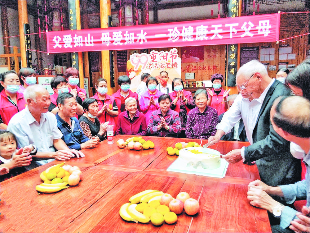 : 昨日,稠江街道組織轄區(qū)21家文化禮堂、11個社區(qū)新時代文明實踐站開展紅色觀影、義診、上門慰問、過集體生日、義工服務、文藝晚會等“情暖重陽”系列活動,向老人們表達節(jié)日的祝福。