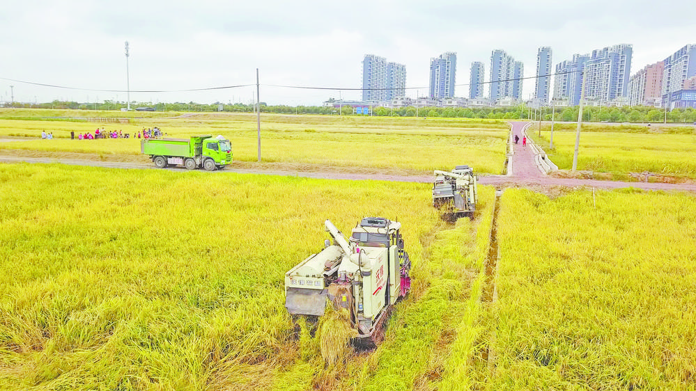 10月14日,在涌金大道與稠州北路交叉口,記者看到福田街道宗宅農(nóng)業(yè)標(biāo)準(zhǔn)地滿眼是金黃色的稻田,宛如油畫。種糧大戶唐細(xì)蘭正忙著收割水稻。 據(jù)介紹,該標(biāo)準(zhǔn)地是福田街道今年新增的7個農(nóng)業(yè)標(biāo)準(zhǔn)地之一,原本是拋荒農(nóng)田,面積205.09畝。目前,該標(biāo)準(zhǔn)地不僅糧食總產(chǎn)量約8.5萬公斤,而且為轄區(qū)內(nèi)中小學(xué)提供研學(xué)場所,經(jīng)濟效益與社會效應(yīng)實現(xiàn)了雙豐收。 目前,該街道共完成“非農(nóng)化非糧化”整治約2300畝,投資1500余萬元對7個地塊進行改造提升,便于機械化種植。 |