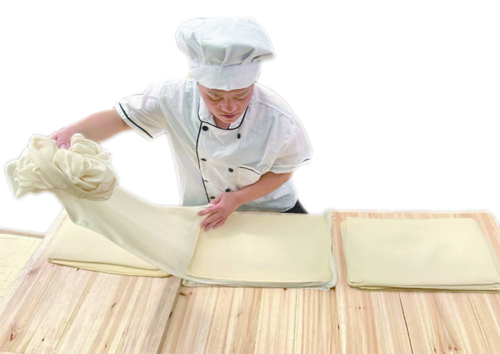 人間從來不缺的,是煙火與煙火的味道,能讓煙火不滅、味道不變的,是執(zhí)著的信念與追求,是煙火味道的那一份用心與赤誠。 義烏豆制品加工歷史悠久。伴隨豆腐制作,豆腐皮、豆腐干、油泡、千張制作應(yīng)運(yùn)而生。而佛堂千張,能讓你回味起深藏在記憶深處的味道! 日前,記者走進(jìn)佛堂稽亭村千張制作現(xiàn)場,帶大家一起體驗(yàn)一下千張的制作過程。 記憶 來自心靈深處 義烏各鎮(zhèn)街都有做豆腐、千張的老作坊,千張作為食材的美食佳肴更是深受義烏市民的喜歡。 其中,佛堂千張以厚度均勻、豆香味濃出名,其含水量大,吃起來口感絲滑軟嫩又不失韌性,是義烏百姓飯桌上不可或缺的佳肴。 “從我讀書開始,父母就在家制作千張,為了第一時(shí)間把千張送到,每天凌晨兩點(diǎn)起床。”稽亭村丁勝強(qiáng)回憶道,義烏豆制品加工歷史悠久,制作者眾多,但精益求精的匠人精神和成品出眾的品質(zhì),讓丁勝強(qiáng)一家的佛堂千張很快在當(dāng)?shù)卣加幸幌亍?/p> 丁勝強(qiáng)母親金平娟表示,千張這個(gè)行當(dāng),剛開始是她和丈夫一起做的,一晃15年。為了確保新鮮,每天賣多少做多少,賣完就收攤!傲x烏有句古話,做豆制品一行,365天都沒得休,越是過節(jié)越是忙! “我們從小就吃著豆腐千張長大的,那種豆腐香味和口感已經(jīng)深深刻進(jìn)了我們的腦海,和其他工藝制作的豆制品相比,本地人還是喜歡這種地道的口味!倍購(qiáng)說。 制作 八個(gè)步驟制成 凌晨兩點(diǎn)半,夜色正濃,丁勝強(qiáng)家的廚房里卻亮起了微光。不一會兒,廚房里就傳來了濃郁的豆香味。 “目前,做千張的流程基本上還是延續(xù)了傳統(tǒng)的工藝。佛堂千張制作需要經(jīng)過多道工序,每道工序都有講究!倍購(qiáng)一邊熟練地將豆?jié){入鍋蒸煮,一邊介紹起了千張的制作工藝。 首先是挑選顆粒飽滿的黃豆!斑@個(gè)時(shí)候正是黃豆成熟的季節(jié),每一個(gè)黃豆都是精心挑選過的,不能有壞豆、爛豆充進(jìn)去,那樣會影響千張的口感。”丁勝強(qiáng)介紹。 緊接著,把挑選好的大豆加清水浸泡,根據(jù)季節(jié)氣候溫度的變化調(diào)整浸泡時(shí)間,控制在6—14小時(shí)之間。第三步是將浸泡好的大豆清洗干凈,放入石磨、加水磨漿。第四步是將豆?jié){入鍋猛火蒸煮,起鍋倒入漿桶或缸內(nèi)進(jìn)行燜漿。第五步是當(dāng)漿溫降至70攝氏度時(shí),用銅瓢點(diǎn)鹵,并均勻攪拌成豆腐花。第六步是把豆腐花勺舀起缸,攪碎均勻澆在百葉箱布上,折布蓋花,依次澆制。第七步是把澆制好的千張模,分三次慢壓成型。第八步是脫去豆包布,晾曬降溫,除去次品,分切裝袋銷售。 在現(xiàn)場,記者看到,丁勝強(qiáng)一家分工合作,各道工序都互相關(guān)聯(lián),每一步都關(guān)系到整體結(jié)果。 “八個(gè)步驟里面,可以說點(diǎn)鹵是關(guān)鍵,豆花的老嫩決定千張的韌勁程度。”丁勝強(qiáng)指著剛剛出爐的千張,它整體看上去四周厚,中間薄,這跟點(diǎn)鹵有關(guān)系,“千張與豆腐有所不同,豆腐說鹽鹵好吃,可千張卻要用石膏。” 堅(jiān)守 只為技藝傳承 越是簡單質(zhì)樸的東西,越不容易達(dá)到最高的水平。千張好吃離不開老手藝人的一代代兢兢業(yè)業(yè)、精益求精的技藝傳承。以一絲不茍、持之以恒的工匠精神對老祖宗留下的傳統(tǒng)技藝進(jìn)行保留和傳承,也是丁勝強(qiáng)一家多年來不變的堅(jiān)守。百年的千張制作技藝,就是在這樣一種樸素的心態(tài)下傳承下來,讓人們在今天依然能品嘗到這舌尖上的美味,洗盡鉛華,歷久彌新。 “只要大家喜歡,我就一直干下去,祖?zhèn)魇炙嚥荒軄G!倍購(qiáng)告訴記者,他會把自己的手藝傳給下一代!爸谱髑埼抑皇瞧渲幸患遥鹛煤臀彝瑯邮炙嚨娜诉有很多,他們每個(gè)人都堅(jiān)守著傳統(tǒng)技藝! 對于義烏人來說,每一張千張都飽含著思鄉(xiāng)之情。傳承并不是簡單地從前輩手中接過接力棒,更多的是留住舌尖上屬于家鄉(xiāng)的味道。 隨著這幾年對非遺保護(hù)力度的加大,佛堂千張制作技藝入選義烏市第八批非物質(zhì)文化遺產(chǎn)代表性項(xiàng)目,而丁勝強(qiáng)一家也打算將佛堂千張制作技藝原汁原味地保留,讓它得以接續(xù)傳承。 記者手記>>> 時(shí)間的車輪滾滾向前,或許城市在變,事物在變,故事在變。唯一不變的便是家鄉(xiāng)美食那濃濃的家味兒。 蘇軾曾云:“已饑方食,未飽先止;散步逍遙,勿令腹空!币痪湓挼莱隽孙嬍吃谌藗兩钪械闹匾。 傳統(tǒng)手工制作的千張吃起來口感絲滑軟嫩,又不失韌性,滿口豆香;有較高的營養(yǎng)價(jià)值,是飯桌上不可或缺的佳肴,深受人們青睞。 如今,任憑歲月流逝,丁勝強(qiáng)一步一個(gè)腳印跟著父母一步步往前走,其制作工藝流程及原材料依然保持原狀。讓人敬佩,亦讓人感慨。 |
