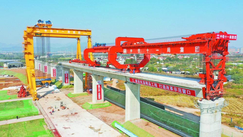 日前,在杭溫鐵路義烏段施工現(xiàn)場,一榀長32米、重810噸的箱梁穩(wěn)穩(wěn)落在橋墩上,標志著國內(nèi)首條“雙示范”民營投資高鐵——杭溫鐵路一期,全線正式開始架梁施工。 據(jù)了解,杭溫鐵路一期工程全長218公里,設(shè)計時速350公里,線路起于溫州南站,經(jīng)由溫州北站、楠溪江站、仙居站、磐安站、橫店站、接入義烏站,并經(jīng)杭溫鐵路二期延伸至杭州西站。杭溫鐵路一期全線共設(shè)置3座梁場,分別為石塔梁場、橫店梁場以及永嘉梁場,箱梁總計841榀,架梁工期計劃于2022年11月結(jié)束。 |