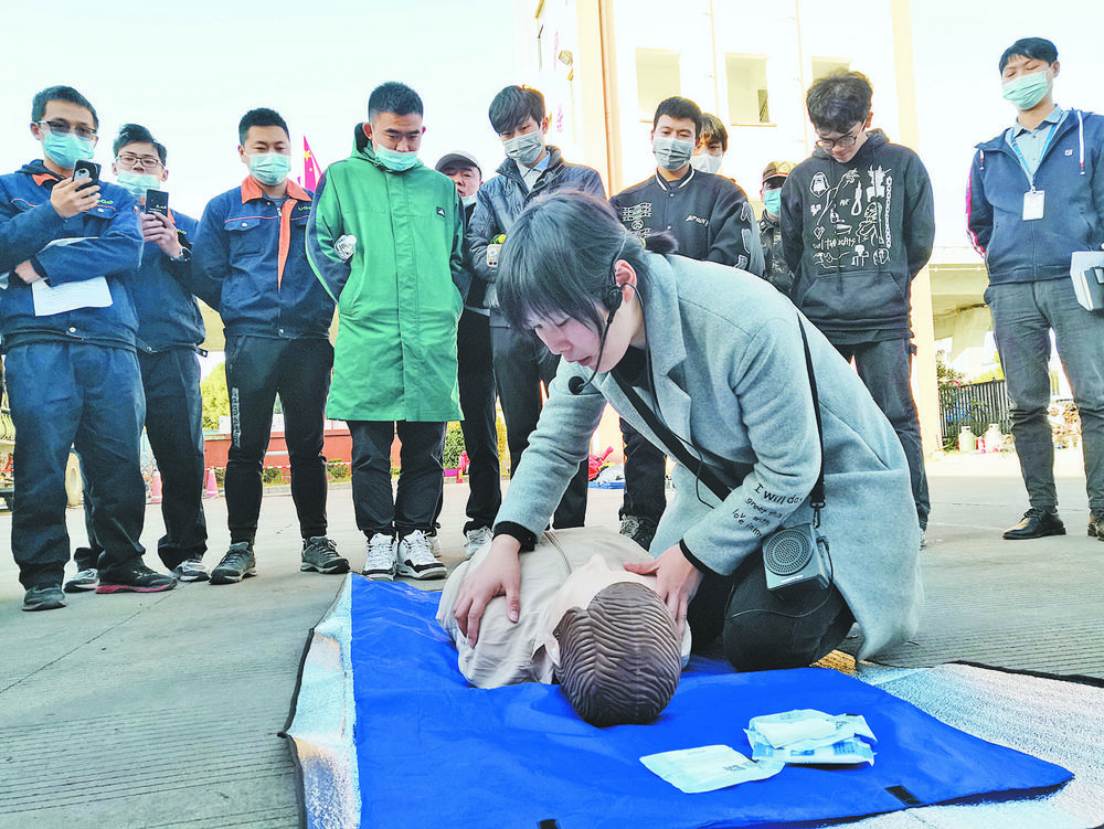 現(xiàn)場,蘇溪鎮(zhèn)專職消防隊(duì)、蘇溪鎮(zhèn)中心衛(wèi)生院等工作人員分別對油桶滅火、消防栓水槍打靶、規(guī)范穿戴重型防化服、帶壓快速堵漏、突發(fā)疾病處理及心肺復(fù)蘇術(shù)等知識技能開展集中授課和操作指導(dǎo)。