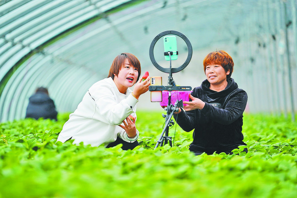 12月26日,河北省遷安市扣莊鎮(zhèn)田莊村農(nóng)民在大棚內(nèi)利用直播的形式推介草莓。 近年來,河北省遷安市大力發(fā)展設(shè)施農(nóng)業(yè)、休閑農(nóng)業(yè),鼓勵(lì)農(nóng)民依靠網(wǎng)絡(luò)進(jìn)行農(nóng)產(chǎn)品線上銷售,同時(shí)開展相關(guān)培訓(xùn)活動,增強(qiáng)農(nóng)民線上銷售能力。目前,遷安市已有100多名農(nóng)民和多家農(nóng)業(yè)生產(chǎn)企業(yè)通過手機(jī)直播為自家農(nóng)產(chǎn)品“代言”,讓冬季農(nóng)閑時(shí)節(jié)農(nóng)產(chǎn)品銷售跑出“加速度”。 |