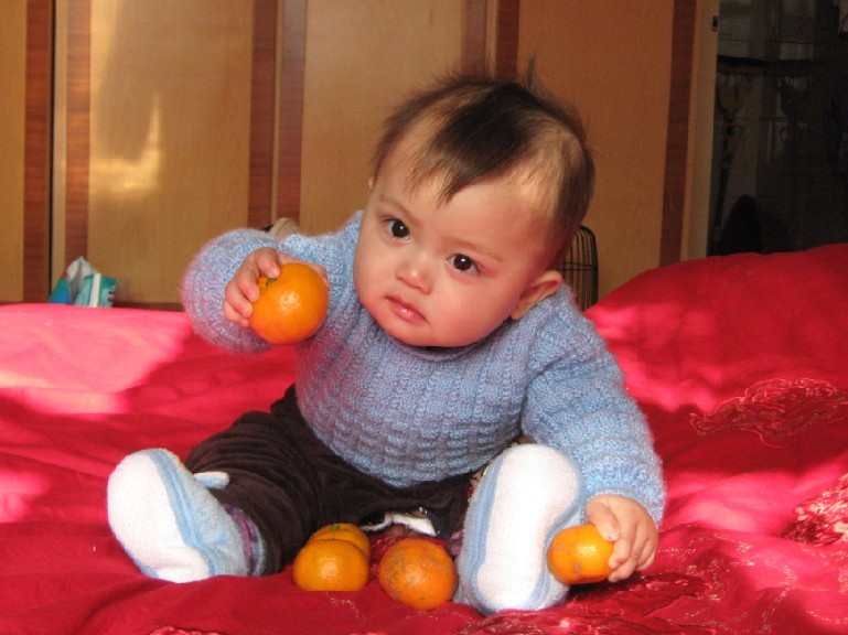 : 童童可喜歡吃橘子了,這不又拿著幾個橘子坐那玩了,不過看他的動作和表情還真像個“產(chǎn)品代言人”,忍不住拍了幾張傳上來給大家欣賞下