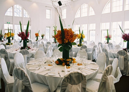 在桌面的中央裝飾花盆中,可以搭配使用鮮花、水果和綠色枝葉,不必使用較為昂貴的純鮮花,這樣就能夠節(jié)省至少一半的費用。