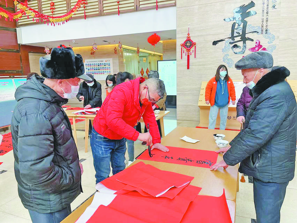 隨著春節(jié)的臨近,年味也開始越來越濃了。1月25日,農(nóng)歷臘月廿三,義烏市老年書畫研究會的12名書法家來到義烏市怡樂新村養(yǎng)老服務(wù)中心,為老人寫春聯(lián)送祝福。 紅紙鋪展,墨香四溢。書法家們現(xiàn)場揮毫潑墨,大顯身手,一個個形態(tài)各異的“!弊周S然紙上,在漢字的線條美與結(jié)構(gòu)美中傳遞出濃郁的祝福!皯艏{東西南北財、門迎春夏秋冬!薄皹s華富貴盈門喜、福壽康寧滿戶春”……書法家們屏息凝神,熟練地揮動著手里的毛筆,行云流水、一氣呵成。剛寫好的對聯(lián)散發(fā)著濃濃墨香,怡樂新村的爺爺奶奶們早就翹首以待,等著將這份充滿新年祝福的禮物收入囊中。 在挑選了自己心儀的作品后,怡樂新村愛書法的老人和員工也紛紛加入其中,為大家寫春聯(lián)。寫好的“!弊趾蛯β(lián)擺滿了整個大廳,紅色的春聯(lián)把現(xiàn)場襯得年味十足。 “居住在怡樂新村,一個節(jié)日都沒有落下!苯衲89歲的金奶奶談起春節(jié)的規(guī)劃時告訴記者,子女工作忙,自己回家過節(jié)待不了幾天,來來回回太折騰。自己已經(jīng)連續(xù)5年在怡樂新村過春節(jié),不僅吃住省心,中心開展的活動也讓她每天的生活充滿了期待!暗却郝(lián)晾干了,我就送去外甥家,今年他剛買了新房子!苯鹉棠陶f。 對于趙女士而言,由于父親患有阿爾茲海默癥,趙女士一家對護理問題極為關(guān)注,“每逢過節(jié)保姆就難找,而且工資要得很離譜,像我父親這種疾病一般人照護起來又嫌麻煩,反而不如在怡樂新村里過節(jié),我們倆都踏實!睋(jù)了解,不少失能、失智老人以及他們的親屬都擔(dān)心春節(jié)期間的照護問題,相比在家,他們對怡樂新村提供的專業(yè)護理更為信任。 事實上,與金奶奶和趙女士有一樣想法的老人不在少數(shù)。如今,在越來越多的老人眼里,怡樂新村才是他們真正的家。很多老人哪怕春節(jié)子女有時間陪伴了,也不回家,而是叫上子女一起在怡樂新村團圓!盁o論老人選擇住在哪里,開心最重要!碑(dāng)天,在前來怡樂新村陪伴父母過小年夜的王女士告訴記者,父母的興趣愛好廣泛,怡樂新村也為他們提供了互動交流的平臺,老人非常享受這里的生活。 |