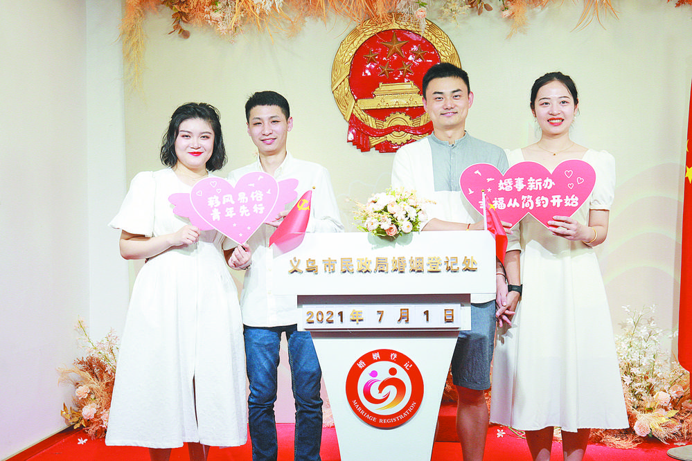 新人在頒證大廳“打卡”留念(資料圖片) 2021年已經(jīng)翻篇,在過去這一年有多少人牽著另一半的手走進(jìn)婚姻殿堂?日前,記者從市民政局婚姻登記中心獲悉,在2021年,共有5409對(duì)新人如愿領(lǐng)到“紅本本”。數(shù)據(jù)顯示,晚婚趨勢(shì)依舊,離婚少了,復(fù)婚多了。 關(guān)鍵詞:領(lǐng)證 5409對(duì)情侶登記結(jié)婚 在2021年,全市共辦理內(nèi)地居民結(jié)婚登記5409對(duì),補(bǔ)領(lǐng)婚姻登記證書1411件,結(jié)婚登記辦件量較2020年減少253對(duì),同期下降4.67%,復(fù)婚人數(shù)達(dá)740人,占2021年結(jié)婚總量的6.84%。 對(duì)此,有專家分析,當(dāng)前,25—29歲仍是主要結(jié)婚年齡,對(duì)應(yīng)的是90后、95后,多是獨(dú)生子女,人口基數(shù)本來就小。 2021年是充滿“愛”的一年,不少小情侶打算在這一年領(lǐng)證結(jié)婚。過去的一年,選擇在“好日子”排隊(duì)領(lǐng)證的也很多。比如2021年的元旦,義烏有80多對(duì)小情侶用紅本本開啟新的一年。寓意著“我愛你”的5月20日,義烏有201對(duì)新人守候“愛的承諾”。此外還有“七夕”情人節(jié)、9月9日“愛你久久”、國(guó)慶節(jié)等日子成為準(zhǔn)新人們心中領(lǐng)證的“好日子”。但婚姻幸福與否,與登記日期是否為“好日子”無關(guān)。專家表示,百年好合的美滿婚姻決定于男女雙方的情感基礎(chǔ),過好了每天都是良辰吉日。 關(guān)鍵詞:年齡 晚婚趨勢(shì)依舊 2021年,義烏男性初婚平均年齡28.4歲,女性26.6歲,與2020年同期相比,男性晚0.2歲,女性晚0.4歲。其中,內(nèi)地居民結(jié)婚登記年齡高峰段,仍為25至29歲,男性 2332人,占男性結(jié)婚人數(shù)的43.11%,女性2373人,占女性結(jié)婚人數(shù)的43.87%。 從結(jié)婚人員的年齡差來看,差1-4歲的人最多,有3330人,占總數(shù)的30.78%,其次是雙方同年齡的1796人,占總數(shù)的16.6%。從文化程度來看,本科人數(shù)3132人,占總?cè)藬?shù)的28.95%,專科人數(shù)3111人,占總?cè)藬?shù)的28.76%。 這樣來看,義烏人對(duì)待婚事并不著急。專家分析,受教育程度提高、大城市化等因素使得結(jié)婚年齡不斷推遲,晚婚的人越來越多。除了客觀原因,婚戀觀念也在變化。作為目前結(jié)婚的“主力軍”90后、95后,對(duì)待結(jié)婚更是有想法。 28歲的王先生表示,目前自己正處于職業(yè)上升期,2021年接了一個(gè)項(xiàng)目,一整年都把精力投在了上面,也因此接到了家里人不少催著相親的信息!拔蚁氚咽稚瞎ぷ飨茸龊,然后以一個(gè)比較好的狀態(tài)去和別人約會(huì)。所以也不是很著急,先立業(yè)再成家吧!”王先生說。 已經(jīng)和男朋友交往了近1年的陳女士,今年29歲,她說,希望多給自己留點(diǎn)時(shí)間,更加了解另一半后再結(jié)婚!皩(duì)我來說,不能為了結(jié)婚而結(jié)婚,兩個(gè)人一定要同頻共振,畢竟和一個(gè)人結(jié)婚就是一輩子的事。” 關(guān)鍵詞:離婚 “冷靜期”初見成效 在一部分人初嘗婚姻甜蜜的同時(shí),也有夫妻過不下去,選擇了離婚。2021年,義烏有1404對(duì)夫妻分道揚(yáng)鑣。專家表示,對(duì)于夫妻來說,一定要懂得互相包容,積極處理家庭小事,彼此共同分擔(dān)。 2021年是《中華人民共和國(guó)民法典》離婚冷靜期規(guī)定施行的第一年,新調(diào)整后的離婚登記程序包括申請(qǐng)、受理、冷靜期、審查、登記(發(fā)證)五個(gè)環(huán)節(jié),自婚姻登記機(jī)關(guān)收到離婚登記申請(qǐng)之日起三十日內(nèi),任何一方不愿意離婚的,可以向婚姻登記機(jī)關(guān)撤回離婚登記申請(qǐng);決定離婚的,自離婚冷靜期屆滿后三十日內(nèi)前往婚姻登記機(jī)關(guān),辦理離婚登記手續(xù)。 “冷靜期”實(shí)行后,大數(shù)據(jù)顯示,2021年義烏共辦理內(nèi)地居民離婚登記申請(qǐng)2070對(duì),離婚登記1404對(duì),離婚登記辦件量較2020年減少537對(duì),同期下降27.67%。 從離婚當(dāng)事人婚姻維系時(shí)間看,6-9年的有310對(duì),占總?cè)藬?shù)的22.13%,其次是2-3年的有236對(duì),占總?cè)藬?shù)的16.85% 關(guān)鍵詞:服務(wù) 不再“為愛奔波”,儀式感滿滿 在義烏,年輕人只管真心相愛,領(lǐng)證服務(wù)就交給民政部門。這一年來,在義烏登記領(lǐng)“紅本本”的新人們紛紛點(diǎn)贊,“體驗(yàn)到了便利服務(wù)的同時(shí),領(lǐng)證的儀式感滿滿! 自2020年起,我省婚姻登記實(shí)現(xiàn)全省通辦。2021年,全市跨區(qū)域辦件總量達(dá)1055件,較去年凈數(shù)值增加906件;其中辦理結(jié)婚事項(xiàng)業(yè)務(wù)占53.18%,辦理離婚事項(xiàng)業(yè)務(wù)占16.21%。全年共辦理結(jié)婚生育戶口“一件事”聯(lián)辦4223件,實(shí)現(xiàn)婚姻電子證照共享應(yīng)用和省內(nèi)內(nèi)地居民婚姻登記全省通辦。2021年共辦理涉外及港澳臺(tái)居民結(jié)婚登記10對(duì),離婚登記5對(duì),補(bǔ)領(lǐng)婚姻登記證2件。 近年來,我市積極推進(jìn)婚俗改革,創(chuàng)新結(jié)婚頒證服務(wù)模式,通過政府購(gòu)買服務(wù)等方式建立婚姻家庭輔導(dǎo)長(zhǎng)效機(jī)制,探索開展婚前教育活動(dòng),提供離婚冷靜期介入心理咨詢輔導(dǎo),倡導(dǎo)適婚青年開展婚前醫(yī)學(xué)檢查,傳遞健康的婚姻價(jià)值觀,促進(jìn)家庭和諧、社會(huì)穩(wěn)定。2021年開展離婚調(diào)適輔導(dǎo)共2218人次,離