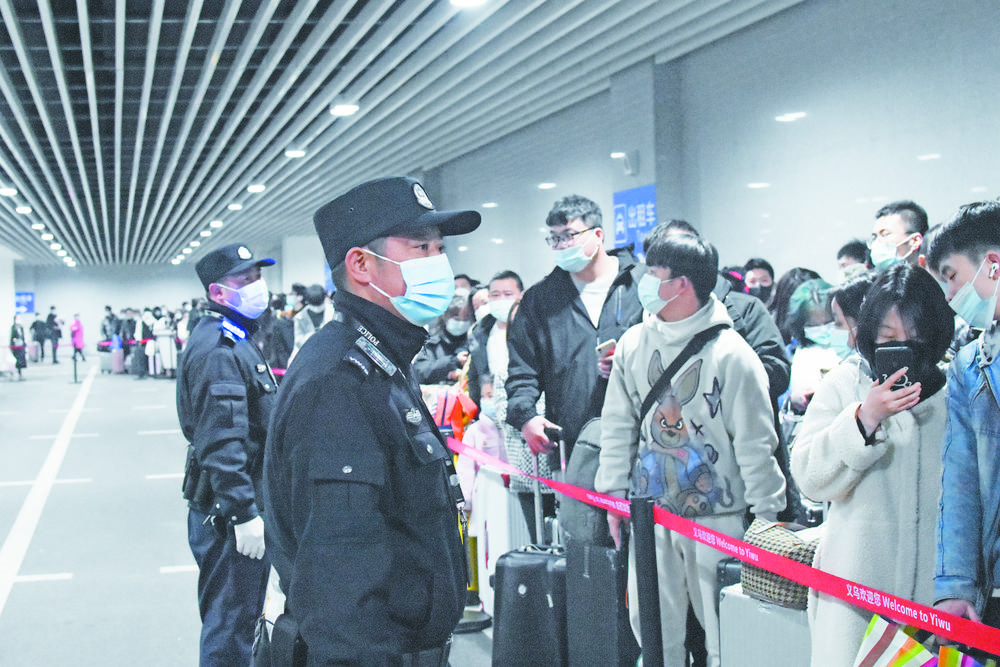 為了確保旅客春運(yùn)返程平安,義烏鐵路警方嚴(yán)格按照上級(jí)要求,實(shí)行高等級(jí)勤務(wù)機(jī)制,加大一線警力投入,嚴(yán)格落實(shí)安保措施。消防民警認(rèn)真開(kāi)展消防檢查,執(zhí)法辦案隊(duì)民警加強(qiáng)案件防控和宣傳提醒,執(zhí)勤警務(wù)隊(duì)民警結(jié)合返程客流和當(dāng)前疫情防控形勢(shì),重點(diǎn)加強(qiáng)出站層巡邏防控、乘降秩序維護(hù)、旅客身份核查,配合防疫部門做好健康碼核驗(yàn)、重點(diǎn)人員留觀與移交等工作,全力筑牢鐵路安全屏障。 |