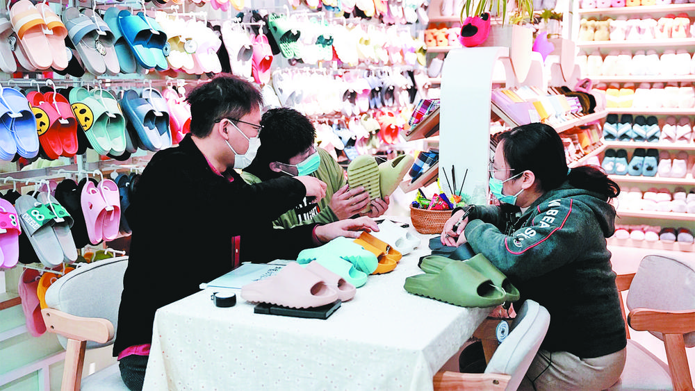 “最近拿貨的比較多,客戶也在備貨,尤其是夏季款的涼鞋、拖鞋賣得好!苯(jīng)營戶鄭俊琴說,無論是去海邊,還是日常休閑,夏季都離不開涼拖鞋,輕快好穿且毫無束縛感!斑@個(gè)拿1000雙,泰國客戶比較喜歡。”從事外貿(mào)出口的王超正在市場采購,他說:“泰國氣候?qū)儆跓釒Ъ撅L(fēng)氣候,平均氣溫都在20度左右,每個(gè)月都會(huì)在市場采購1-2萬雙拖鞋發(fā)往泰國! 隨后,記者走訪多家店鋪了解到,今年氣溫回暖的時(shí)間較遲,夏季款涼鞋、拖鞋采購季也延遲了一段時(shí)間!斑M(jìn)入3月行情逐漸回暖,銷量較上月增長50%左右。”正在店里上架新款拖鞋的商戶柯倩倩說,為迎合年輕人的喜好,對拖鞋外觀、材質(zhì)等方面進(jìn)行創(chuàng)新,今年上架了60多款拖鞋,主要以抗菌海綿EVA材質(zhì)為面料,外觀輔以簡約卡通形象,吸引了不少客商下單。 為進(jìn)一步增加銷量,柯倩倩積極改變銷售方式,拓展線上銷售渠道!爱a(chǎn)品內(nèi)銷外銷都有,外貿(mào)訂單少了就內(nèi)銷補(bǔ)!笨沦毁徽f,目前已陸續(xù)開通阿里巴巴國際站,參展一些線上展會(huì)獲取訂單,效果不錯(cuò)。 |