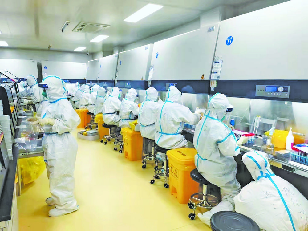 在援滬逆行者中,有這樣一群幕后的“隱形戰(zhàn)士”,他們活躍在戰(zhàn)“疫”前線,離病毒最近,離親人最遠(yuǎn)。他們的職責(zé)雖不是直接接觸患者,卻在努力剝開病毒的真?zhèn),讓更多的人避免感染,默默為臨床醫(yī)生提供及時(shí)準(zhǔn)確的感染診斷依據(jù)。他們有一個(gè)共同的名字:檢驗(yàn)師。 4月14日,記者連線浙大四院檢驗(yàn)科副主任檢驗(yàn)師吳英萍,聽聽她為我們講述馳援期間的故事。3月29日,具有多次馳援經(jīng)驗(yàn)的吳英萍帶領(lǐng)10名隊(duì)員,入駐湖州核酸檢測基地,負(fù)責(zé)核酸樣本的檢驗(yàn)。 浙大四院核酸檢測隊(duì)隊(duì)長吳英萍表示,目前基地的樣本主要來自于上海和嘉興,最多的時(shí)候一天的標(biāo)本量可達(dá)12萬,相當(dāng)于一天檢測120萬人口的感染情況,這也是該基地首次達(dá)到日檢10萬管的滿負(fù)荷運(yùn)轉(zhuǎn)。 穿戴好防護(hù)服、護(hù)目鏡、醫(yī)用外科口罩、手套、鞋套……這是吳英萍和同事們每天工作前必經(jīng)的準(zhǔn)備流程,在這樣的“全副武裝”下,他們在實(shí)驗(yàn)室里緊張忙碌地度過了半個(gè)多月。 從2020年開展新型冠狀病毒檢測工作以來,吳英萍先后馳援過新疆和省內(nèi)紹興、永康等地,經(jīng)常與病毒短兵相接,把實(shí)驗(yàn)室當(dāng)“戰(zhàn)場”。她說:“這次馳援上海,參加的其實(shí)是家門口的戰(zhàn)斗,支援上海,也是為了保衛(wèi)浙江! 在實(shí)驗(yàn)室內(nèi),吳英萍不僅要完成滿負(fù)荷的檢測工作,同時(shí)也要打起十二分精神,時(shí)刻注意個(gè)人防護(hù),因?yàn)樵谶@里,保證醫(yī)務(wù)人員零感染是一切工作的重中之重。每一天,實(shí)驗(yàn)室里幾百名工作人員連軸轉(zhuǎn),要把16條流水線平穩(wěn)運(yùn)作起來。而作為管理人員,吳英萍需要考慮的不僅僅是把人員管理好,還要把每個(gè)環(huán)節(jié)都做好,確保每個(gè)崗位上的人一定是最熟練的人,同時(shí)每個(gè)環(huán)節(jié)之間的人和人、崗位和崗位間都要做到完美交接,這樣才能保證實(shí)驗(yàn)室的日檢效率。 在吳英萍身后,隊(duì)員正在埋頭奮戰(zhàn)。在隊(duì)員劉雪柯的身后,是一排排被塞滿的貨架,她投入馳援一線工作以來,與隊(duì)友們并肩作戰(zhàn),每6個(gè)小時(shí)輪一個(gè)班次。劉雪柯所在的小組每一個(gè)班次都要完成2萬管的樣本檢驗(yàn),看著身后的標(biāo)本被迅速“消滅”,又逐漸堆滿,她在忙碌之余竟油然生出一種與病毒賽跑的滿足感。 吳英萍說:“面對如此高強(qiáng)度、高壓力的工作任務(wù),隊(duì)友們每天都頂住壓力,圓滿完成。大家就像新冠病毒流水線上的偵察兵,頑強(qiáng)拼搏,愈戰(zhàn)愈勇,同時(shí)做到團(tuán)隊(duì)配合默契、高效分工。希望在大家的齊心協(xié)力下,早日打贏這場疫情防控戰(zhàn)! |
