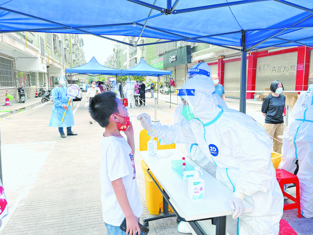 江東街道青巖劉村核酸檢測現(xiàn)場。 編者按:當前,我市疫情防控形勢嚴峻復雜,4月21日晚起,在市疫情防控指揮部的統(tǒng)一指揮調(diào)度下,我市劃分了疫情防控封控區(qū)、管控區(qū)、防范區(qū)及圍合區(qū),全力構(gòu)筑抗擊疫情的“銅墻鐵壁”。物資如何運送?人員如何調(diào)配?安全如何保障?一連串問題考驗著我們。即日起,本報派出多路記者前往封控區(qū)、管控區(qū)、防范區(qū)及圍合區(qū)進行實地探訪,以記者的視角記錄疫情防控“前線”正在發(fā)生的故事…… 為及時查漏補缺,消除風險隱患,4月21日晚起,我市疫情防控封控區(qū)、管控區(qū)、防范區(qū)及圍合區(qū)陸續(xù)開展全員核酸檢測。核酸檢測采樣現(xiàn)場情況如何?4月22日,記者前往江東街道、北苑街道、佛堂鎮(zhèn)多個采樣點進行實地探訪。 江東街道:“敲門行動”不落一人 “寶貝,加油!”當天下午2時許,在江東街道1號采樣點(篁園路加油站附近),一位三四歲的小男孩嘗試著離開母親懷抱,獨自站著接受核酸采樣。幾次咽拭沒成功,男孩有些畏難。這時,媽媽將他高高舉起,在醫(yī)務人員、志愿者的齊聲鼓勵下,男孩積極配合完成了采樣。 在該采樣點現(xiàn)場,記者看到,2個采樣臺依次排列開,在現(xiàn)場工作人員的指引下,居民掃碼、測溫后,即被分流到不同的采樣通道,待檢測采樣后再按照警戒線指示依次離開,現(xiàn)場秩序井然。 “昨天下午接到通知后,我們立即開始布置現(xiàn)場,半小時后全體醫(yī)務人員、工作人員就位,下午4時采樣臺帳篷全部搭建完成、醫(yī)療物資全部到位,晚上7時許分批通知居民開始第一輪核酸采樣,凌晨12時第一批采樣結(jié)束,凌晨5時第二批采樣結(jié)束,今天下午2時開始第二輪采樣……”1號采樣點負責人許志剛向記者細算著各項工作的時間節(jié)點。 “請保持距離,采樣完成后請馬上撤離!”隨后,記者來到8號采樣點(青巖劉C區(qū)74幢附近),與其他各點位一樣,每一條通道上都有四五名工作人員分開站立,有的負責引導居民驗證采集碼、有的負責消殺、有的負責維持現(xiàn)場秩序……值得一提的是,每位完成檢測的居民都會領取一張“4月22日已采樣”的綠色標識貼。 “為了全面準確排查疫情風險,每一輪的貼紙顏色都不一樣。”8號采樣點負責人朱婷說,街道開展了“敲門行動”,按一幢接一幢、一個單元連一個單元的順序開展核酸檢測,每到相應的時間段,每幢樓的“樓長”和房東就會逐戶上門通知相關居民出門采樣。這樣一來,不僅提高了采集效率,而且避免了居民一擁而來排隊采樣的現(xiàn)象。 “年齡大了,手機上操作比較慢,醫(yī)務人員和工作人員都很有耐心。特別感謝他們‘逆行’為我們服務,我們一定要支持他們的工作!眲傋鐾旰怂釞z測的居民龔奶奶說,工作人員耐心細致地幫她完成檢測,讓她感受到了濃濃暖意。 據(jù)悉,為高效、有序、安全地開展核酸采樣工作,江東街道此次共設置了核酸采樣點27個,采樣臺84個,300余名醫(yī)護人員參與采樣工作。同時,全轄區(qū)發(fā)動黨員干部2600余名,分別擔任采樣引導員、掃碼指導員、測溫亮碼員、信息登記員、秩序維護員、出口引導員、標本轉(zhuǎn)運員及場地消殺員,全力協(xié)助醫(yī)務人員,做好核酸采樣工作。 北苑街道:圍合區(qū)域秩序井然 “來,張嘴、抬頭,放輕松!薄爸x謝你!”……4月22日上午,北苑街道圍合區(qū)域開啟新一輪核酸檢測,醫(yī)護人員一邊引導受檢群眾配合采樣,一邊用熟練的手法加快完成采樣操作。 記者在現(xiàn)場看到,當完成核酸采樣后,工作人員為居民貼上“已采樣”的標簽。現(xiàn)場市民積極主動配合,整個過程忙而不亂、井然有序。為防止人群聚集,北苑街道工作人員在核酸檢測點的排隊處設置了隔離帶、遮陽篷,地上清晰地施劃了“一米線”。居民們提前掃好“義烏防疫碼”,做好核酸采樣信息登記,排隊時自覺保持安全距離,整個核酸采樣點運轉(zhuǎn)高效、氛圍溫馨。 據(jù)悉,北苑街道圍合區(qū)域共設置核酸采樣點12個,根據(jù)市疫情防控指揮部的部署,北苑街道迅速響應,隨即激活“三責”聯(lián)動快速響應機制,一個小時內(nèi)300余名工作人員、580余名志愿者到崗到位。 佛堂鎮(zhèn):現(xiàn)場工作井然有序 “請大家有序排好隊伍,保持人與人之間的距離!4月22日下午2時,佛堂鎮(zhèn)雅西村黨支部書記傅先明不厭其煩,一遍又一遍地提醒著現(xiàn)場前來檢測的村民,聲音已略顯沙啞。 記者看到,管控區(qū)佛堂鎮(zhèn)雅西村雙溪口自然村內(nèi)設有3個采樣臺,現(xiàn)場配備50名工作人員,正在進行測溫掃碼、信息錄入、核酸采樣等工作。同時,在封控區(qū)雅西村雙溪口自然村68號附近,2名醫(yī)護人員、2名“掃樓”人員以及2名村干部組建的上門采樣組,正在對該處居民開展上門采樣工作,減少人員流動。當天下午,佛堂鎮(zhèn)防疫人員按照“不漏一戶、不漏一人”的原則,順利完成封控區(qū)、管控區(qū)644人核酸采樣。 |